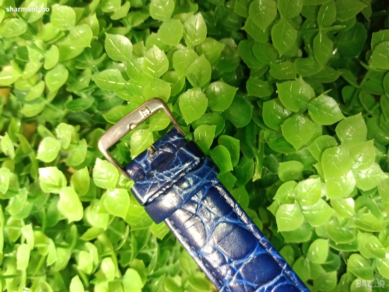 - с оригинална синя стилна каишка от естествена кожа.