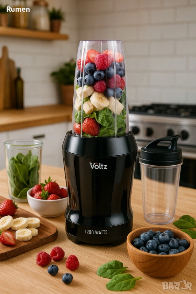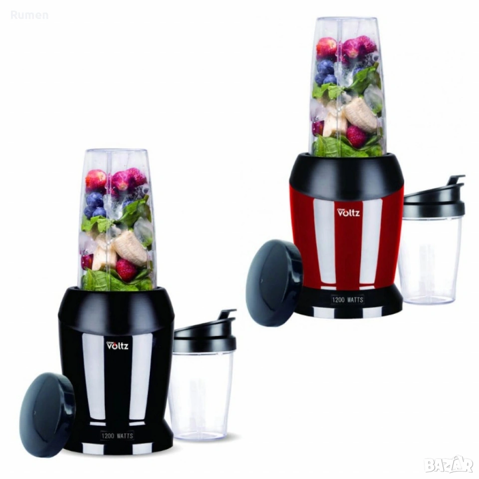 Блендер нутри Voltz, 1200W, 2 чаши с вместимост: 1 л./ 0.8л., Черен или Червен