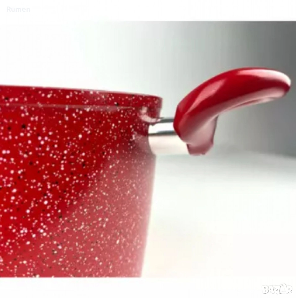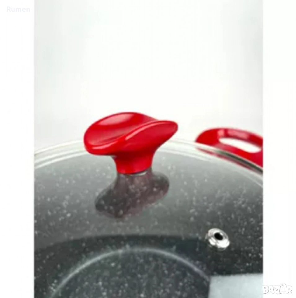 Тенджера Voltz, 3.4л./9.5л., Дълбока, Мраморно покритие, Индукция, Червен → Обява 53433562