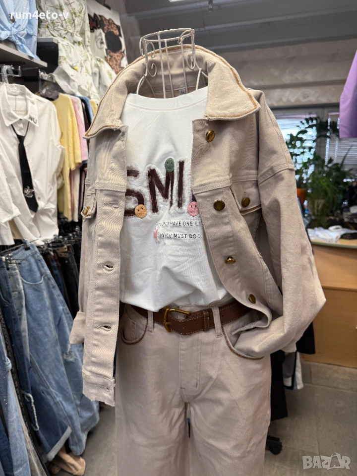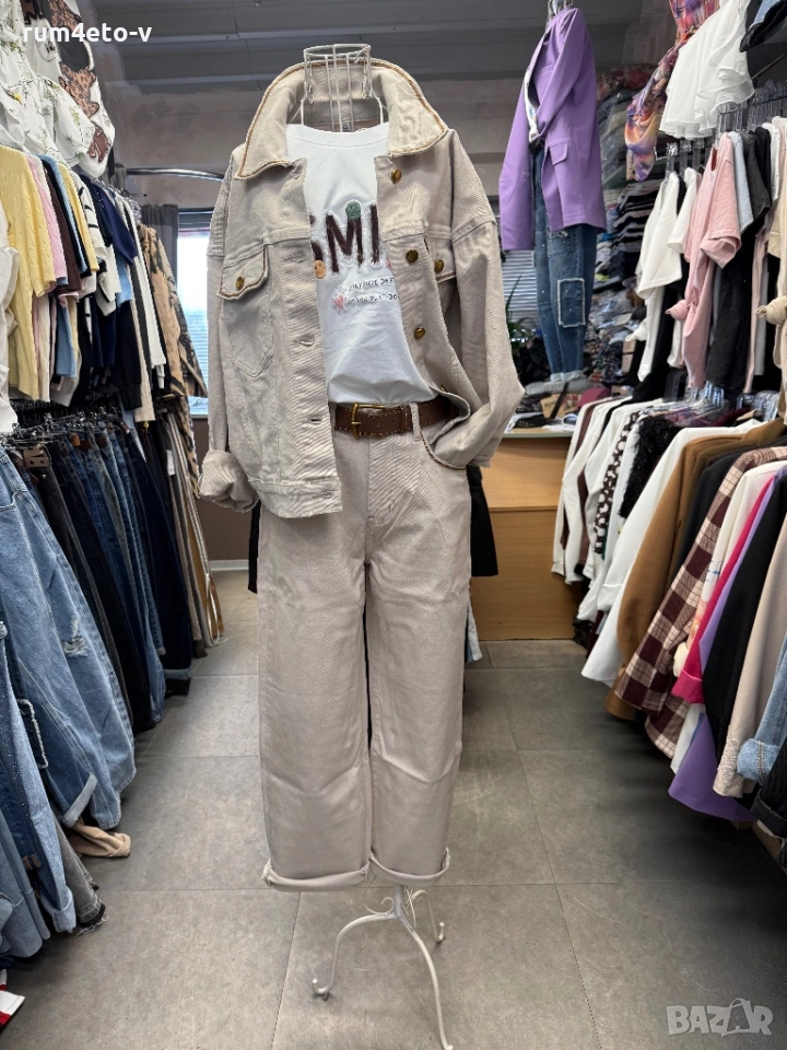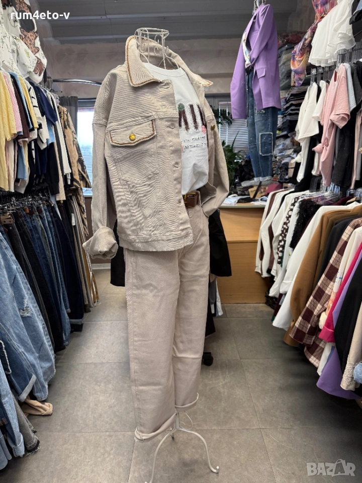 Дънком комплект с премиум качество! Якето е oversize , дънките са мам фит