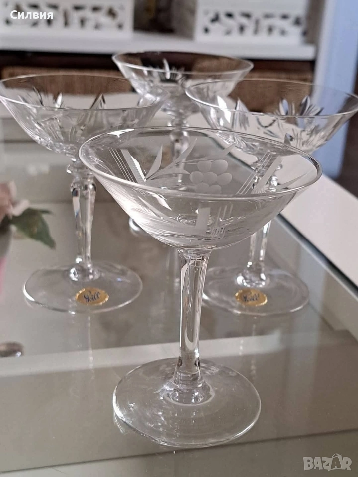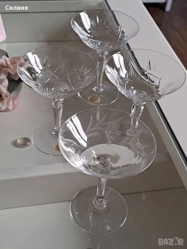 Малки кристални чаши 4️⃣ бр. Чаши за ликьор, Много фин и лек кристал. Düren, Peill & Sohn, ~1970 г. ♦️ Кристал, шестстранно фасетирано стъбло с възел.... Вис. 10 см. Диам-8см. Вместимост 80мл. Декоративна изрезка. Düren/ Германия, Peill & Sohn. ●Една е различна. Обща цена 🛒2️⃣8️⃣€ 54,76лв 🌹..•´¨) ¸.•¨) 🌱... (¸.•¨¯`*•.🍃🌹🍃 Това е винтидж артикул и няма да е в чисто ново състояние. Възможно е да има малки несъвършенства, които само допълват историята на артикула.