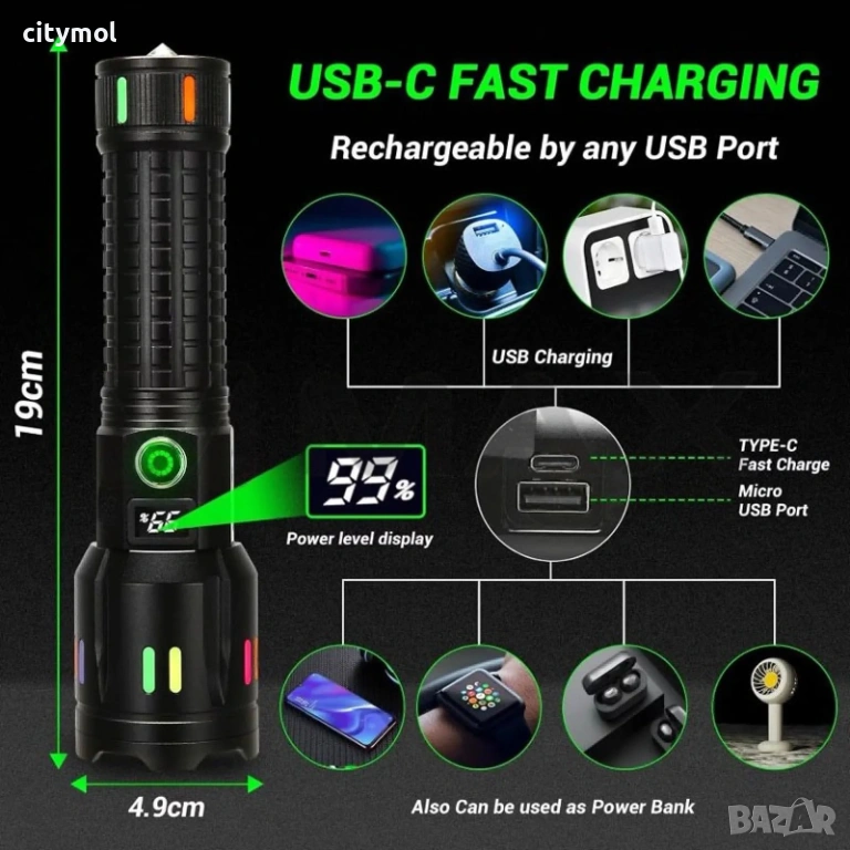 Батерия: 1 x 26650, включена в комплекта