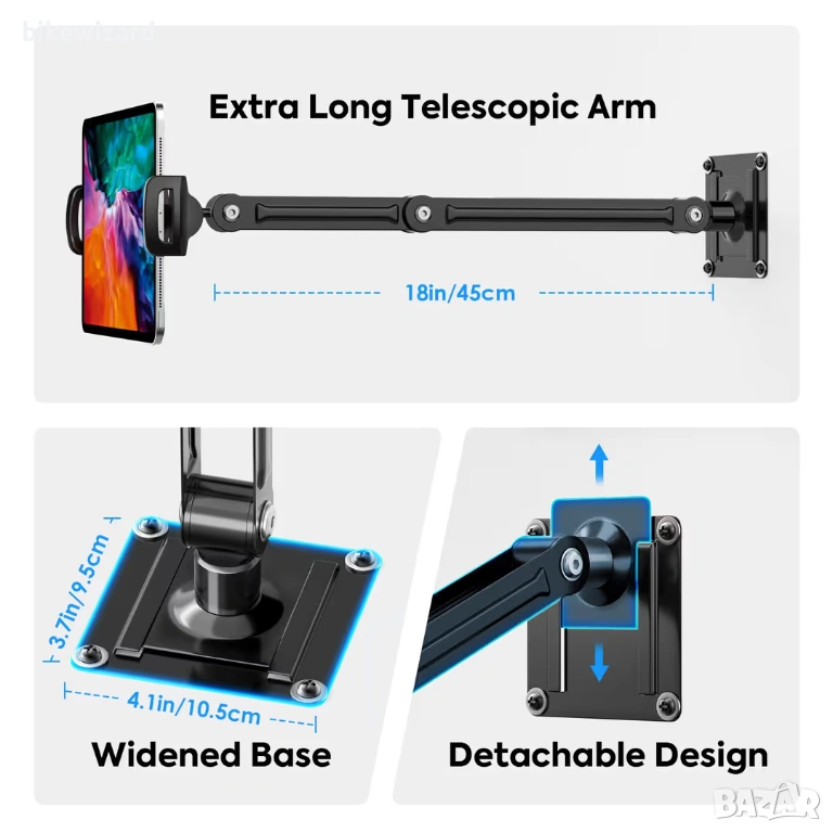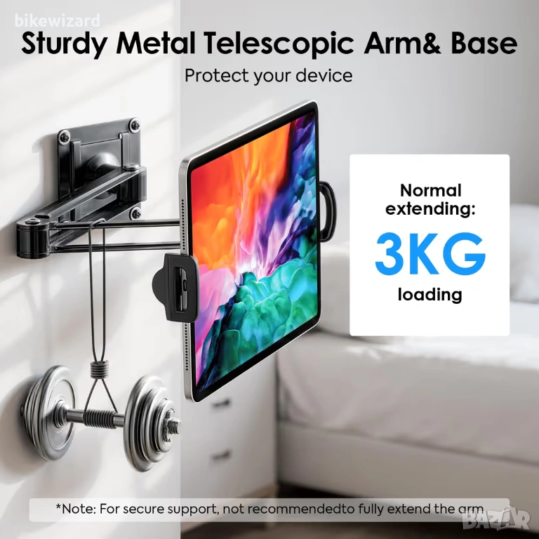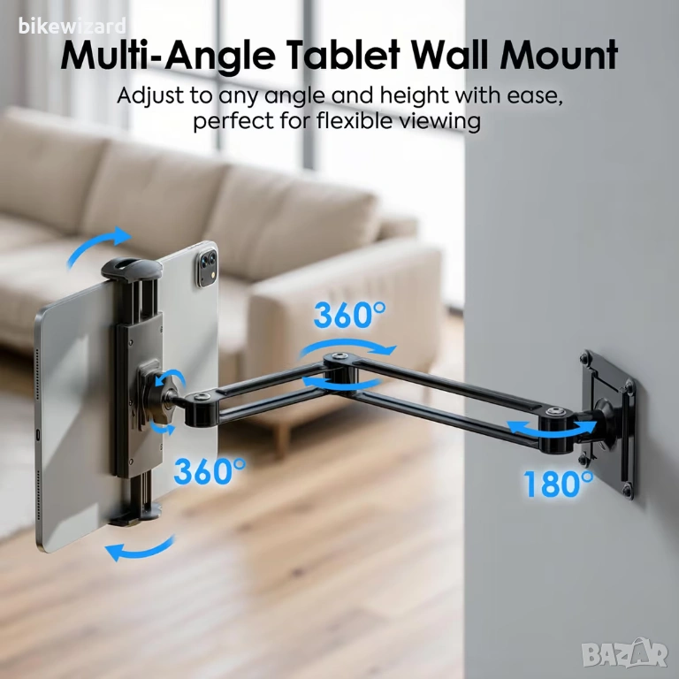 Универсална стойка за таблет MoKo за стена, регулируема на 360° размери 4.7"-14" НОВА → Обява 53433893