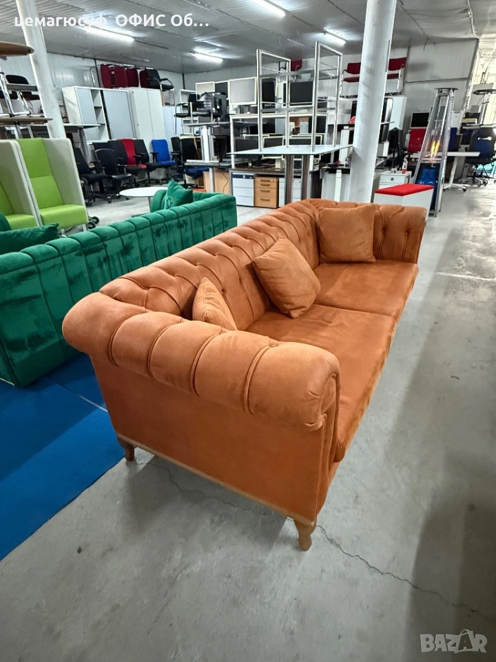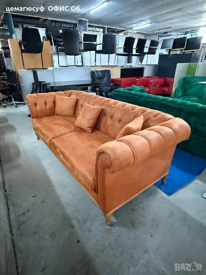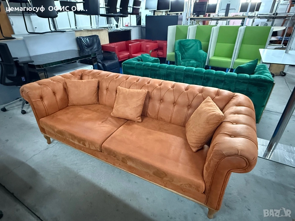 Предлагаме класически диван Chesterfield с висококачествена набукова кожа, внос от Германия. Диванът е стабилен, удобен и с елегантен дизайн, подходящ както за офис, барбър шоп, чакалня, така и за други обществени или жилищни пространства.