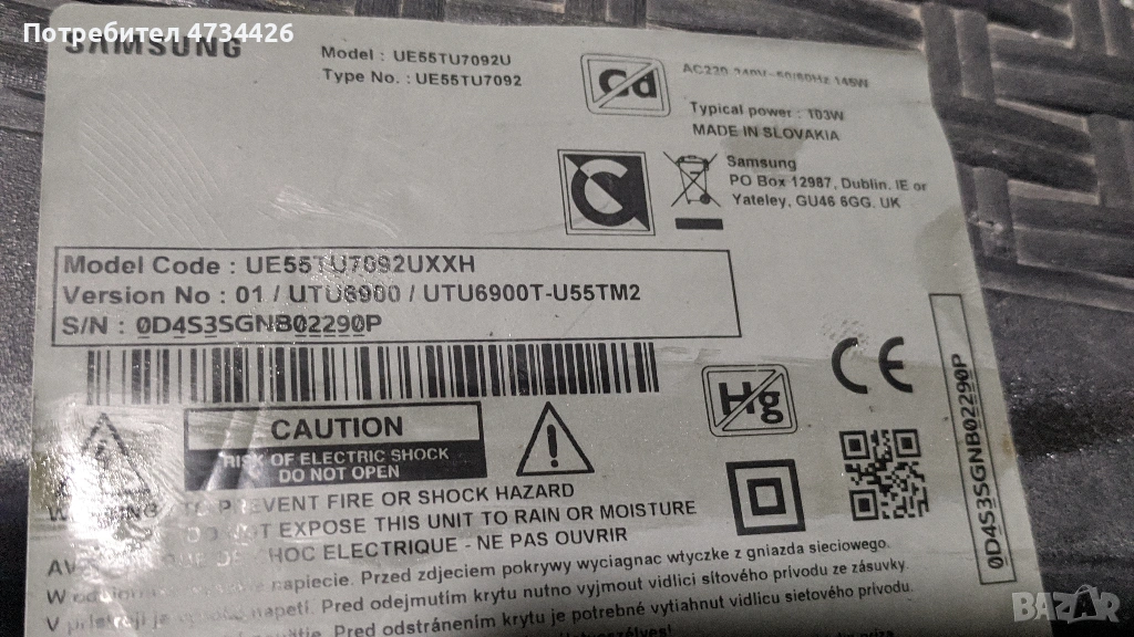 SAMSUNG UE55TU7092XXH-KANT-SU2_6900_5055, снимка 1 - Части и Платки - 53433992 SAMSUNG UE55TU7092XXH-KANT-SU2_6900_5055, снимка 2 - Части и Платки - 53433992 SAMSUNG UE55TU7092XXH-KANT-SU2_6900_5055, снимка 3 - Части и Платки - 53433992 SAMSUNG UE55TU7092XXH-KANT-SU2_6900_5055, снимка 4 - Части и Платки - 53433992 1/4