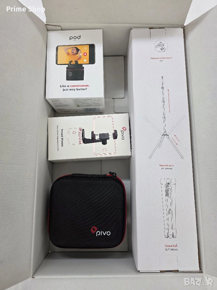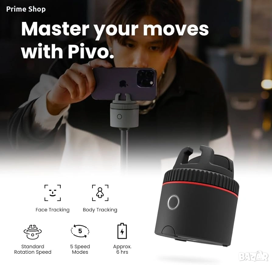 Pivo Pod Classic е иновативна моторизирана стойка, която трансформира вашия смартфон в личен оператор. Чрез използване на изкуствен интелект (AI), устройството автоматично проследява движенията ви, осигурявайки винаги центрирани и динамични кадри. Това е идеалното решение за създатели на съдържание, фитнес инструктори, влогъри и всеки, който иска да заснема професионално видео без чужда помощ. Устройството е съвместимо както с iOS, така и с Android операционни системи.