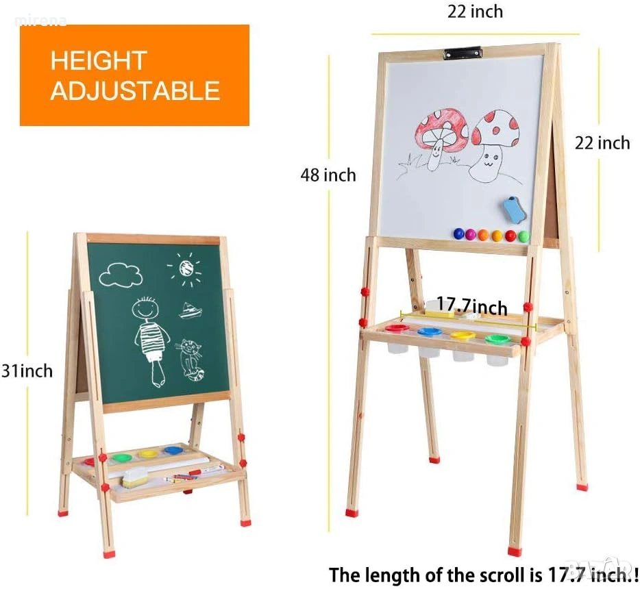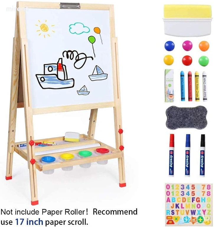 Двустранна магическа дъска: Статив за деца, оборудван с тебешир и бяла дъска, който може да осигури множество творчески дейности като рисуване, оцветяване, чертане, писане на букви и математически игри и др., е приятен и образователен.