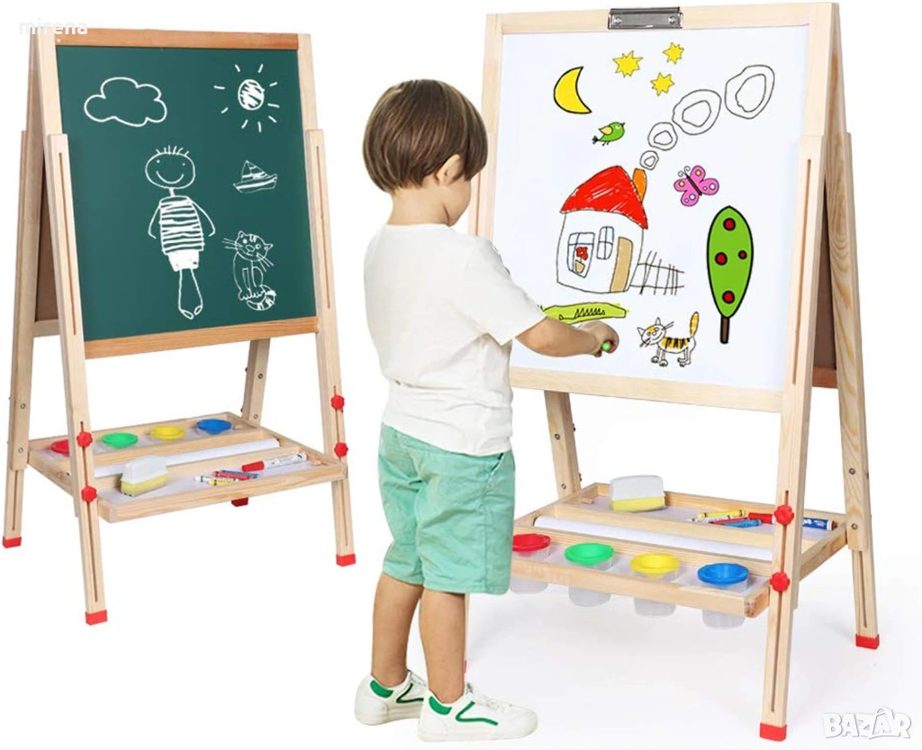 Детски статив, двустранен магнитен бяла и черна дъска, многократна