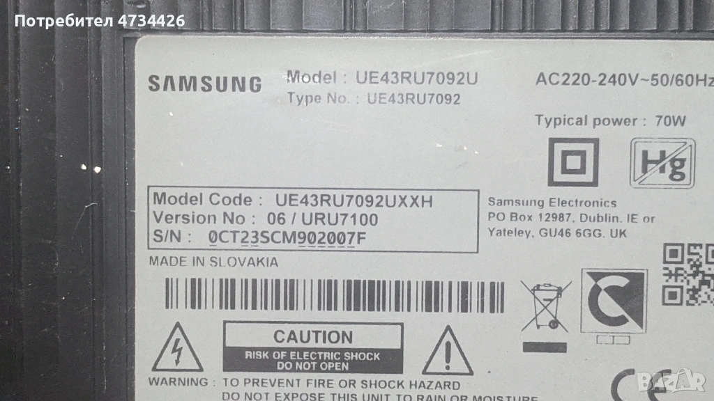 SAMSUNG UE43RU7092U/BN41-02703A/BN44-00947J → Обява 53434256