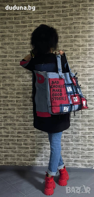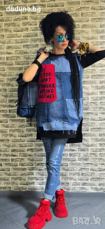 Нова чаровна туника с дънково и Червено ! Дива чанта 40лв.
