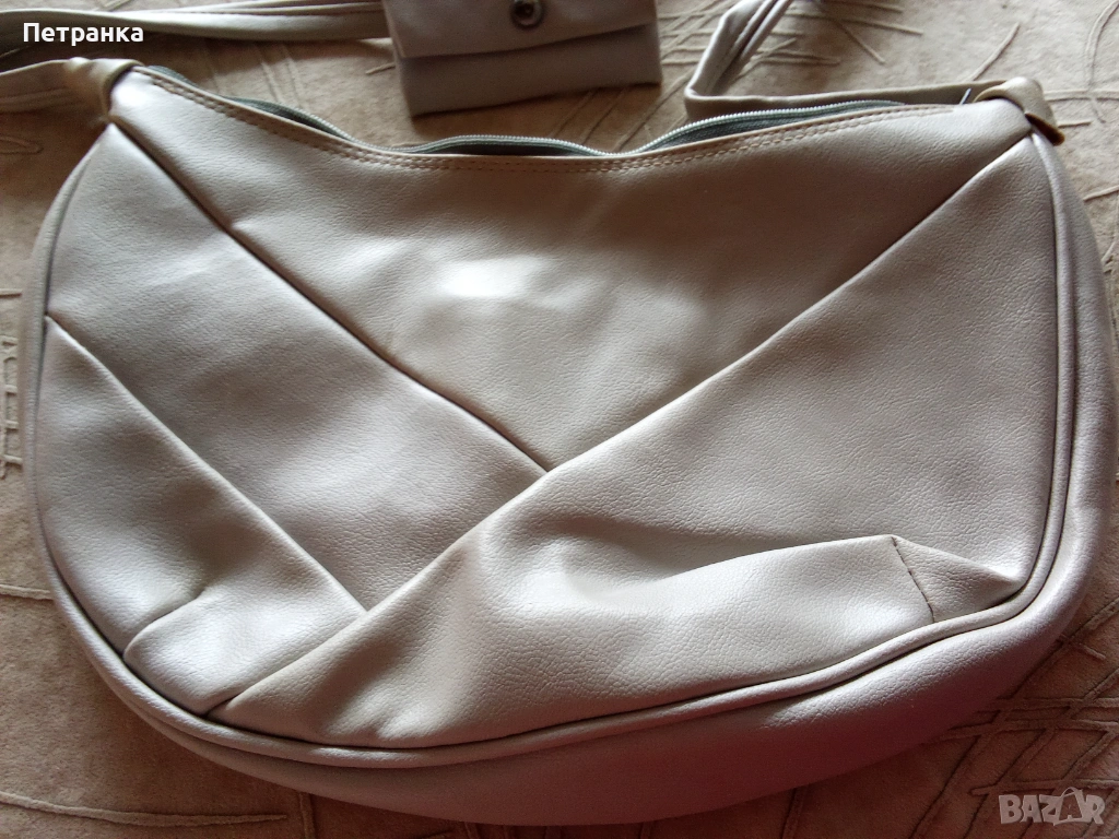 Снимки 2 и 3 - светло сива, размери 25/ 20/ 12, с портмоне и вътрешен джоб, с дълга дръжка.