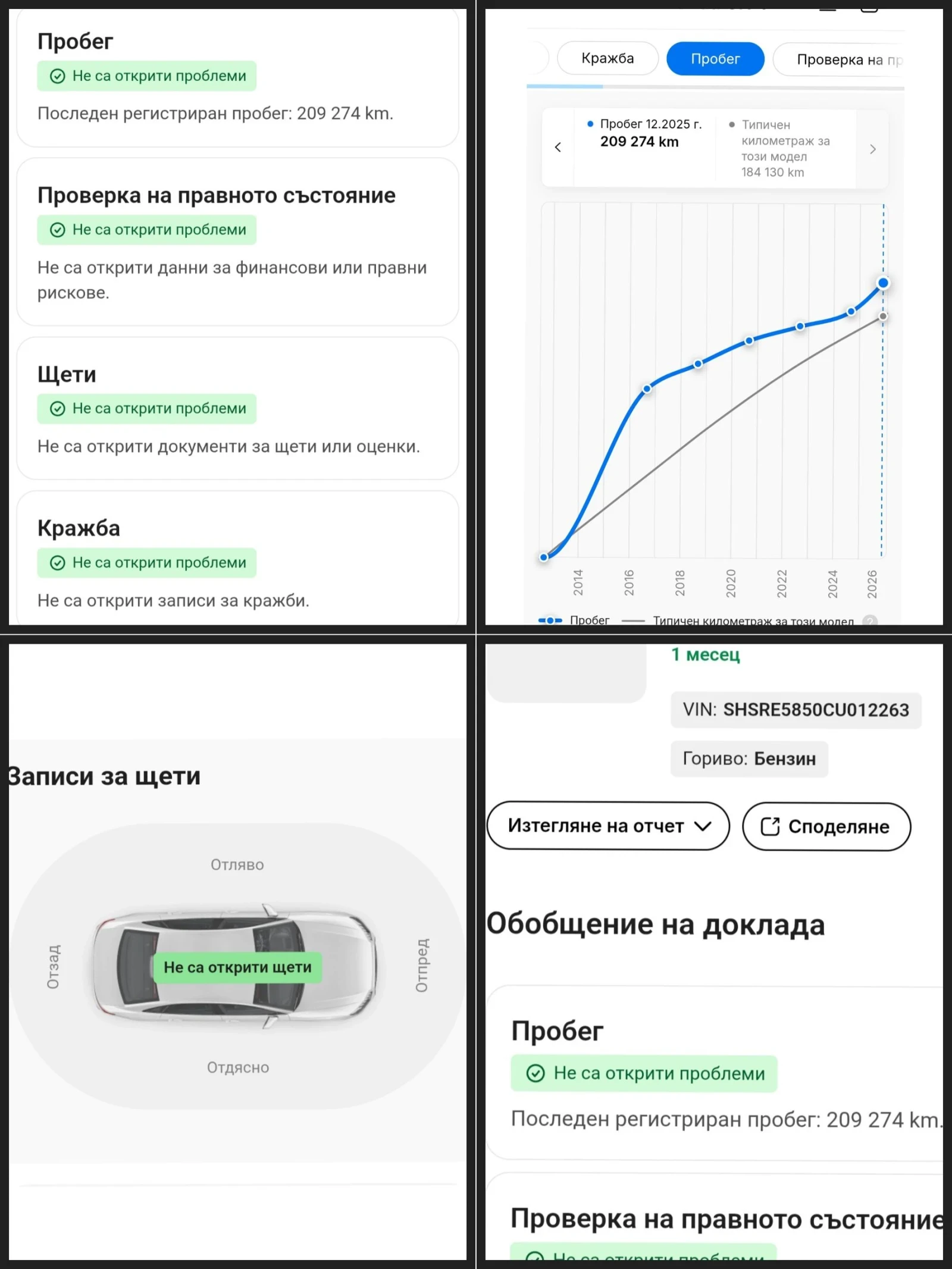 ? Honda CR-V 2. 0 i 150 к. с. | 2012 г. | Euro 5 | 209 000 км ? Нов внос ? Напълно обслужен ? Отлично техническо и визуално състояние ? Основни данни: Година: 2012 Пробег: 209 000 км Мощност: 150 к. с. Еко стандарт: Euro 5 Двигател с верига Идеален за газ Фейслифт модел Сервизна история Предоставям VIN номер за проверка SHSRE5850CU012263 Наличен CarVertical доклад (снимки прилагам) ? Оборудване / Екстри: ? Преден + заден парктроник ? Навигация ? Темпомат ? Мултифункционален волан ? Алкантарен салон ? Двузонов климатроник ? Бленд огледало ? Затъмнени задни стъкла ? Оригинални 18" алуминиеви джанти Honda (фейслифт) ? Добри зимни гуми ? Състояние: ? Напълно обслужен ? Преминал технически тест ? Преминала пълна диагностика ? Без забележки по ходова част и двигател ? Автомобилът разполага с: CarVertical доклад Сервизна история VIN за проверка ? За още снимки и информация Facebook страницата ни Vanessa Motors ? Оглед с предварителна уговорка ? Възможност за проверка в сервиз по ваш избор