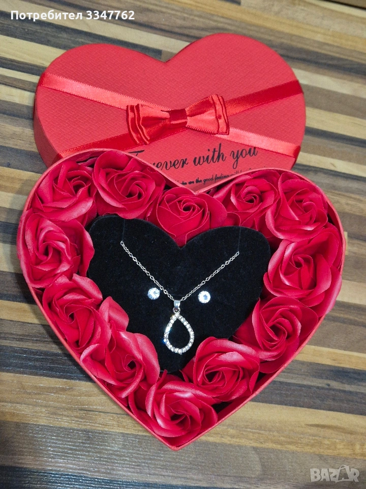 Кутия със вечни сапунени рози +колие и обеци