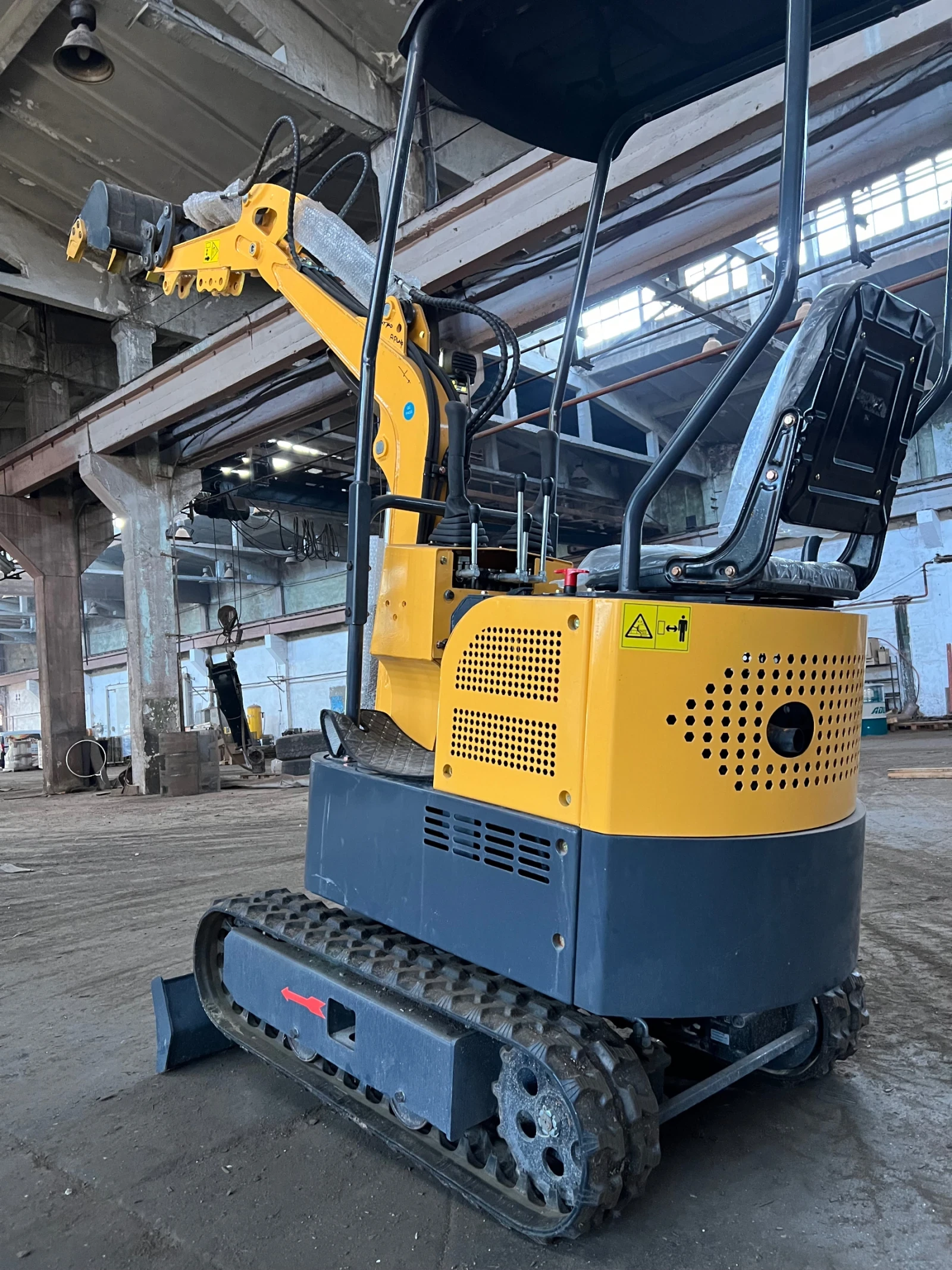 Китайски мини багер с верижно задвижване компактен, мощен и надежден! Оборудван с гребло и възможност за монтаж на свредло за пробиване на дупки в земята. Идеален за работа в тесни и труднодостъпни пространства, осигуряващ висока прецизност и отличен контрол. Перфектен избор за строителни, земеделски и ремонтни дейности !