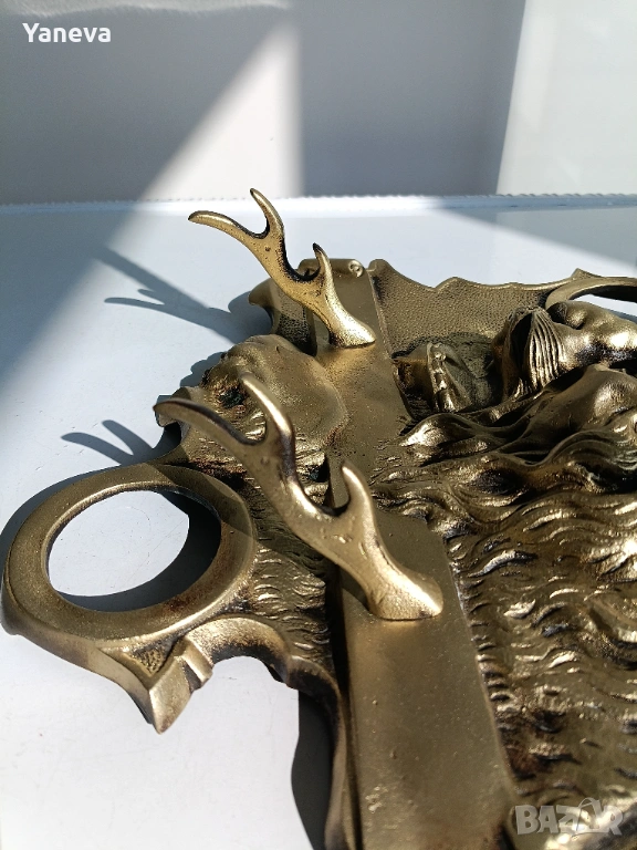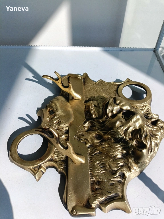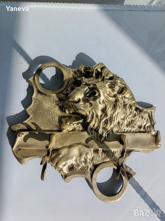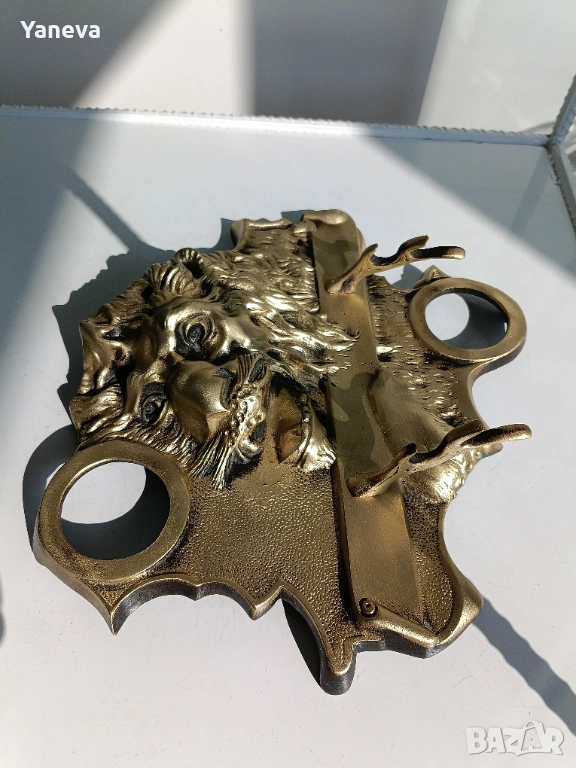 Бронзова ,стара мастилница , Царство България , масивна, детайлна изработка с лъвска глава . → Обява 53434575