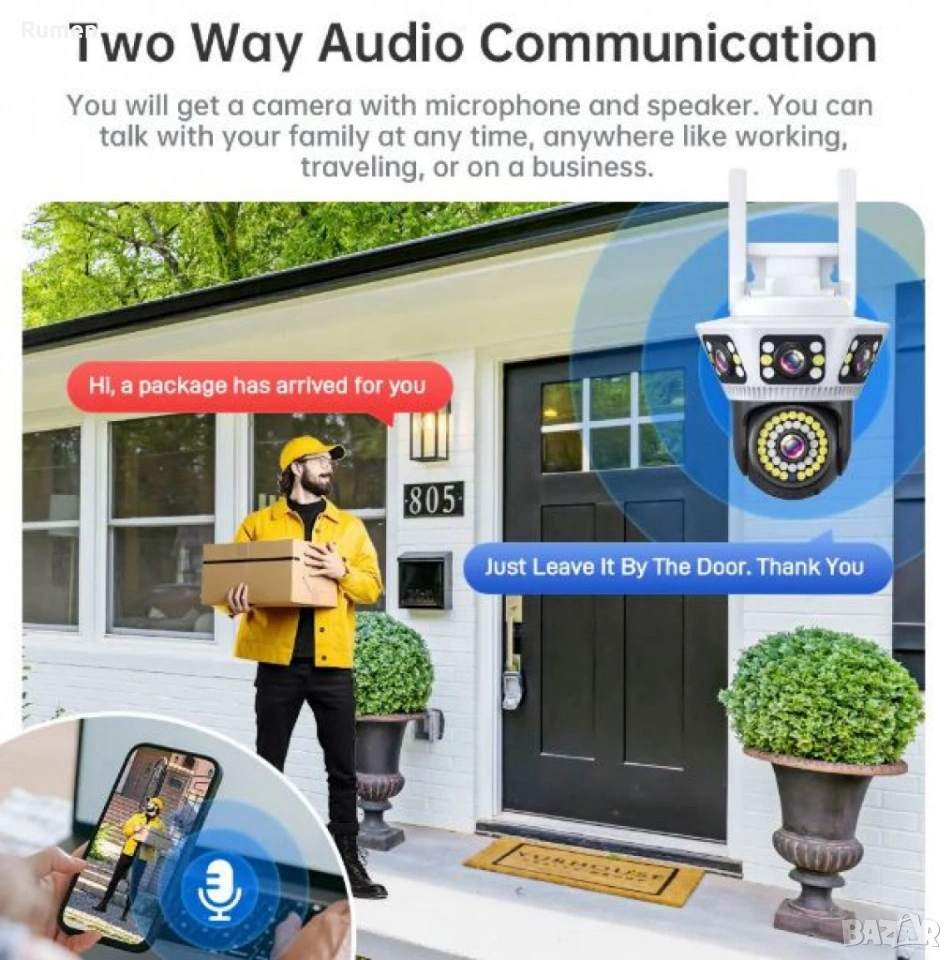 Пълноцветна панорамна 6K Wi-Fi камера за нощно виждане → Обява 53434661