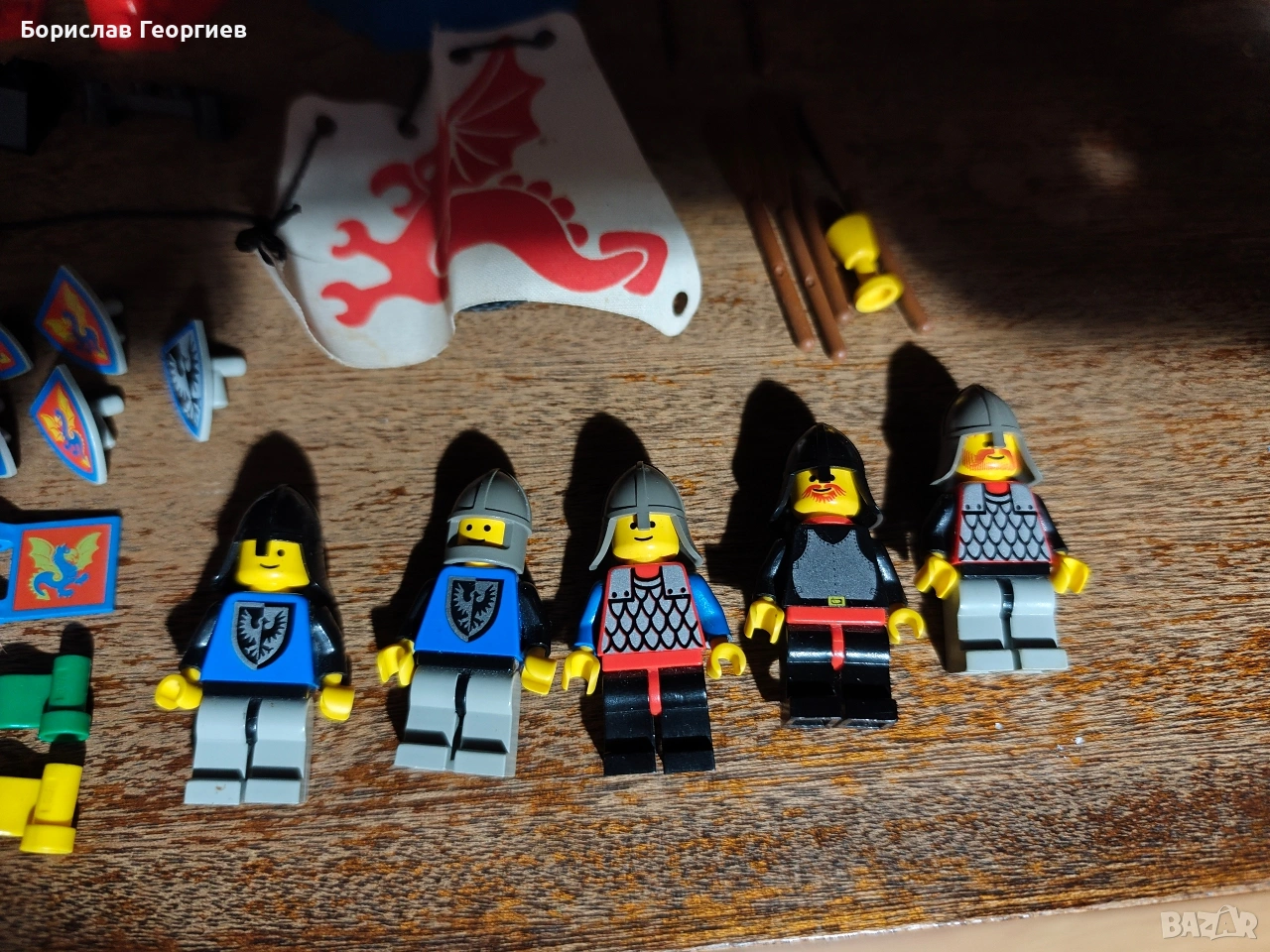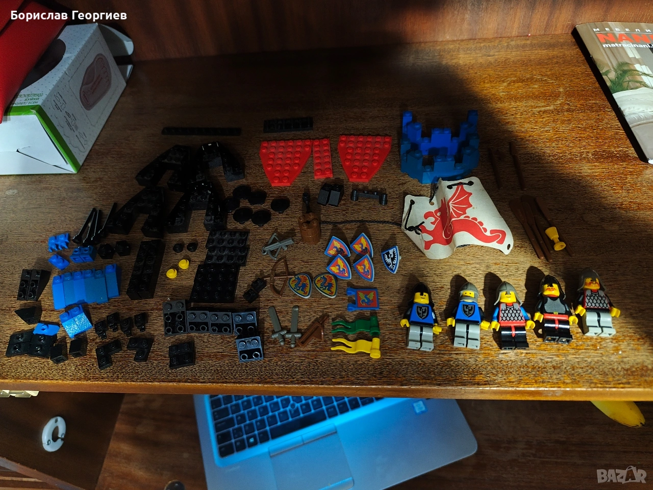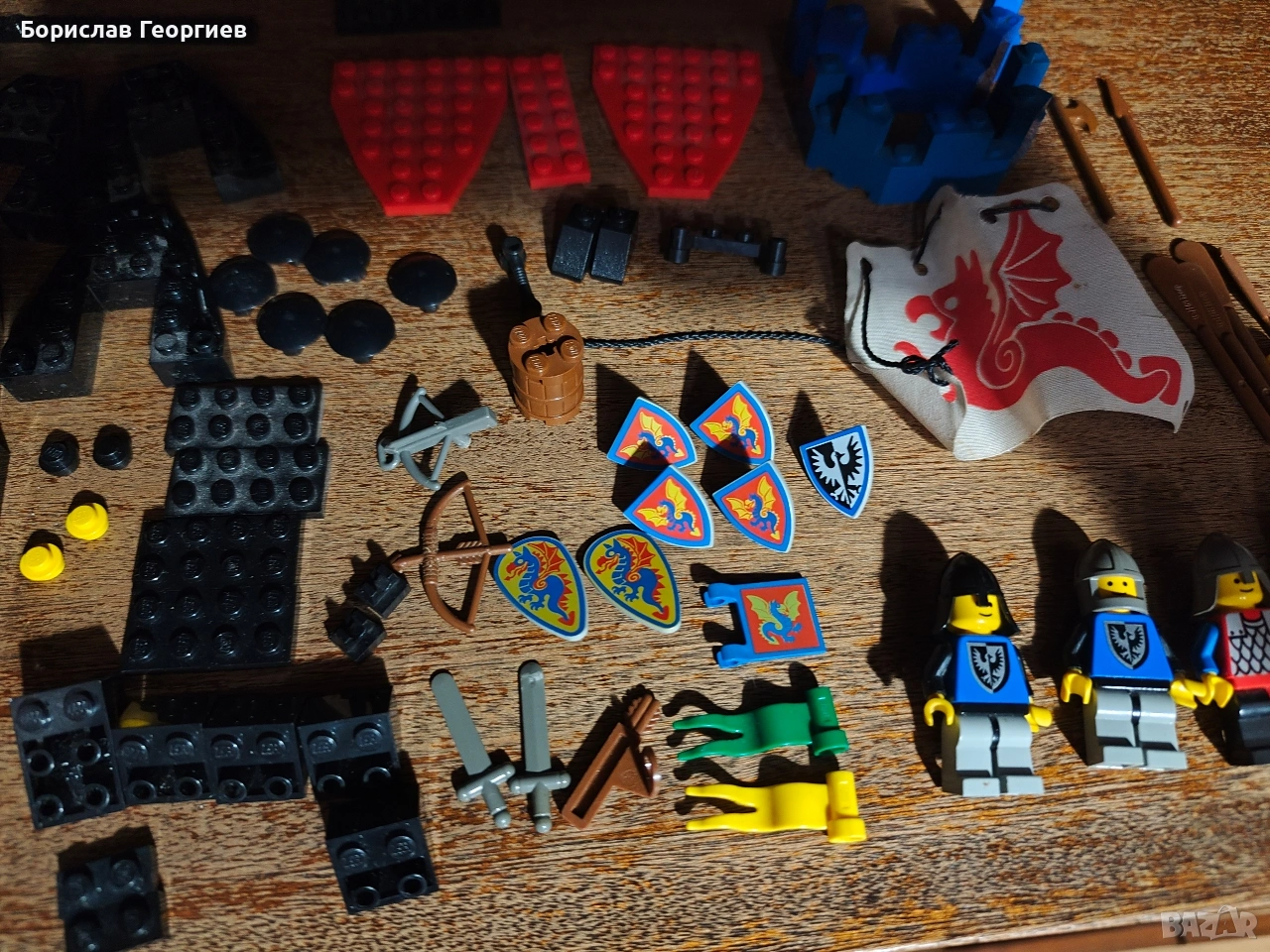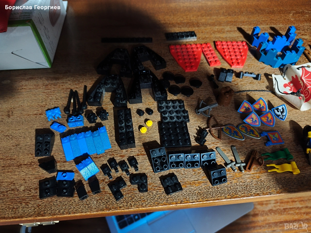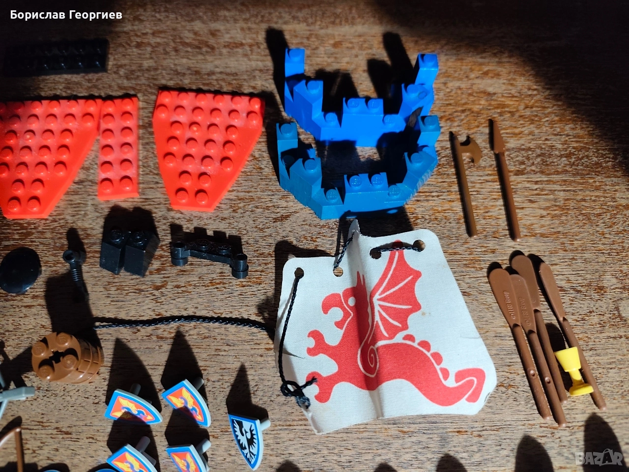 Комплекта е без кутия и книжка.Липсващите части се виждат на последните снимки,като цветовете на частите са различни.Знамето е сцепено отстрани.Някои от сините части са тръгнали да пожълтяват.