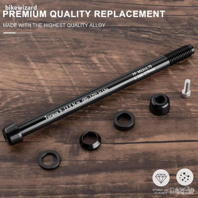 CXWXC Проходна ос Адаптер за оси за велотренажор M12 x P1.75. Дължина 160 мм до 172 мм НОВА