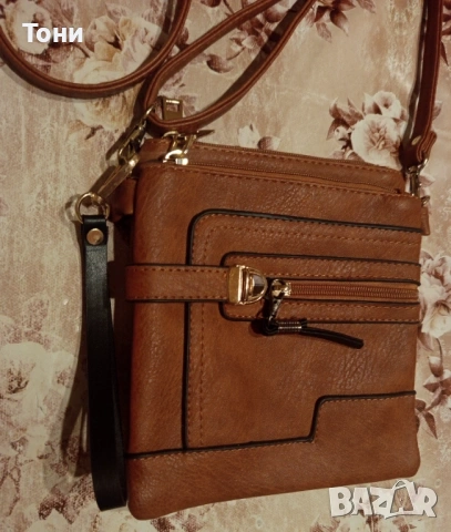 Нова Кожена Мъжка Чанта с четири отделения, регулируема дръжка, която може да се сваля.