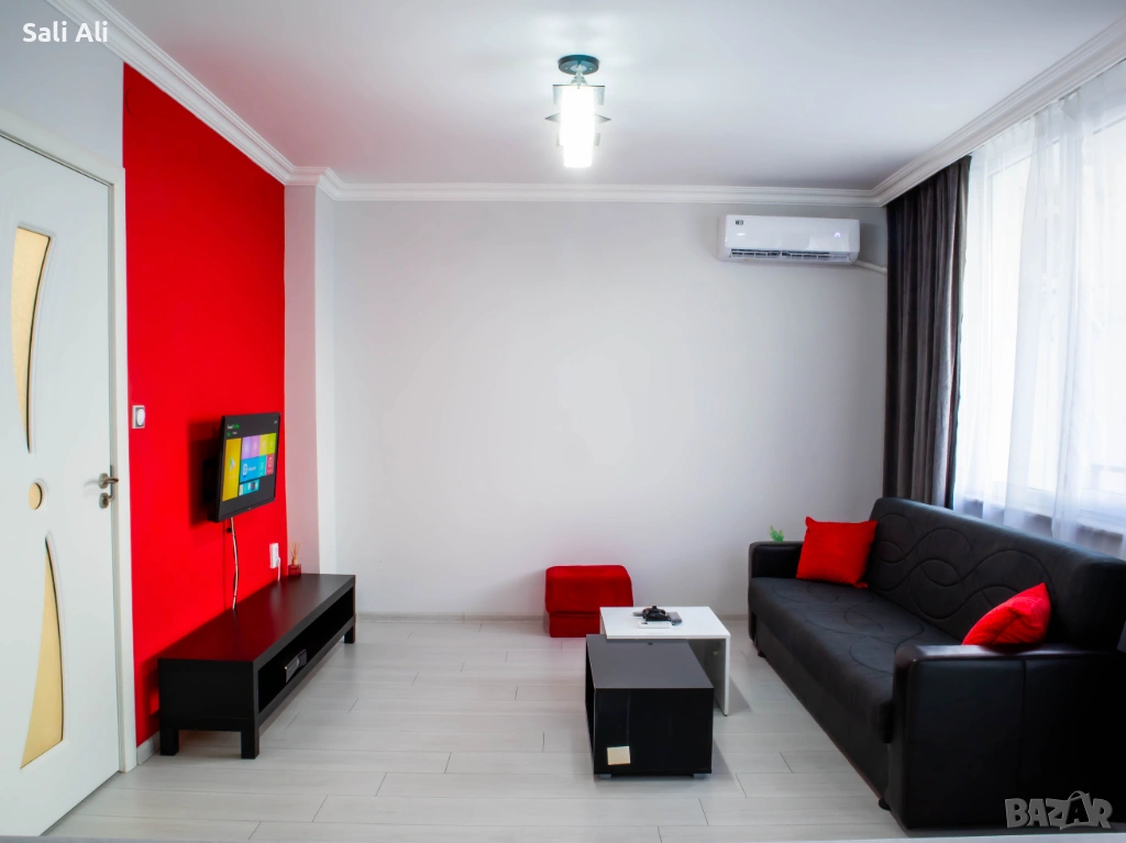 + Списък на обзавеждането: 32 инчов телевизор, диван, холна маса, два бар стола, Apple iMac Компютър и Компютърно Бюро, Хладилник, Печка, Пералня, Кетъл, Тост Машина, пройецкционна система, климатик, озвучителна система и мн. Други.