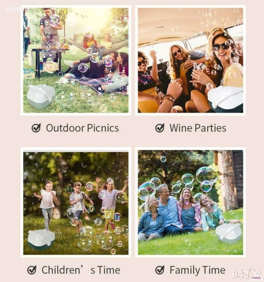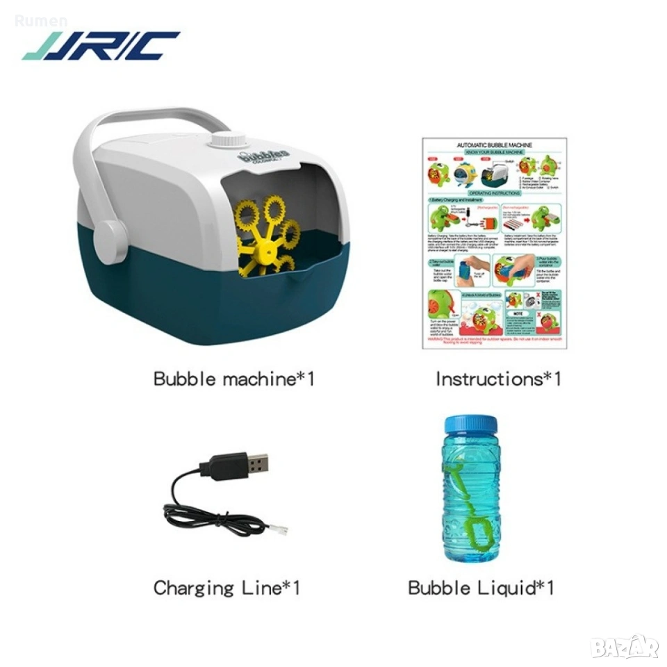 Машина за произвеждане на множество сапунени балончета / Захранване: USB/ Време за зареждане: около 90 минути/ Време за използване: около 60 минути;