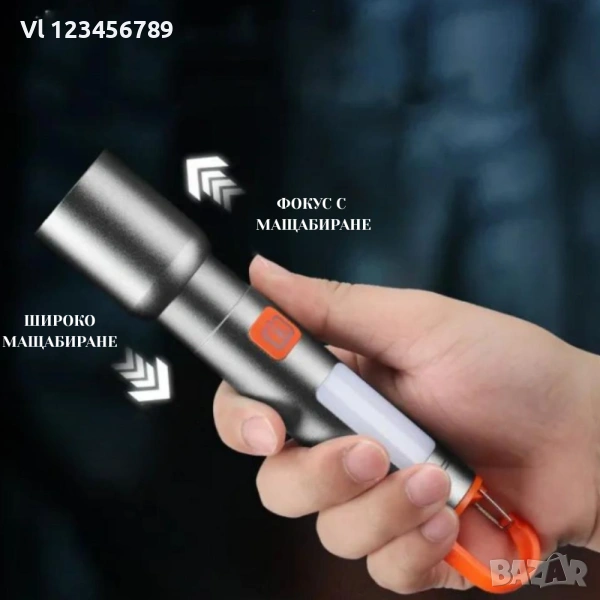 Функции: Мащабируем обектив, странична светлина, карабинер за закачане;