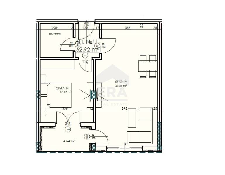 Предлаганият апартамент 11 се намира на втори жилищен етаж с източно изложение. Има площ 72.10 кв.м., от които чистата такава е 62.92кв.м. и имат следното разпределение: всекидневна с кухненски бокс и трапезария 29.51 кв.м., спалня 13.27 кв.м., баня с тоалетна, антре, тераса лоджия с площ 4.54 кв.м.