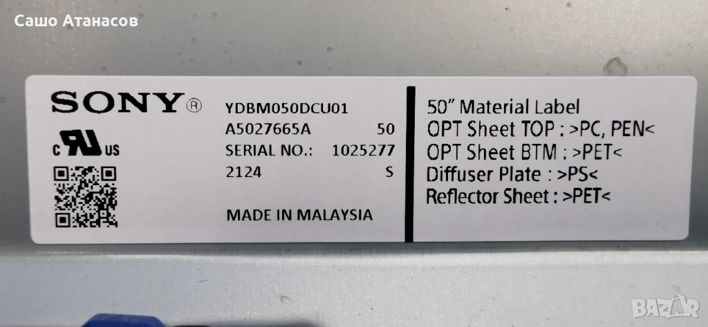 Модули от телевизор SONY XR-50X93J със счупена матрица (панел YDBM050DCU01 )