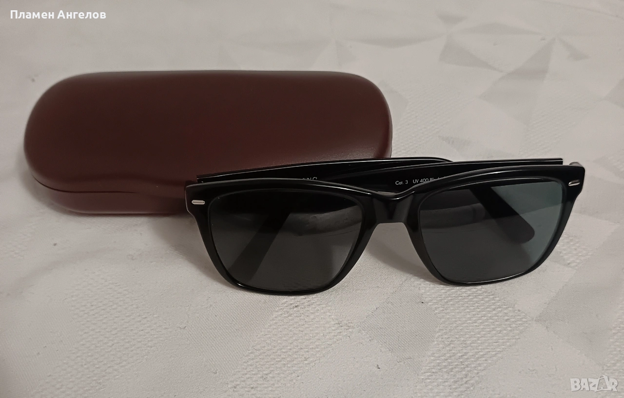 Слънчеви очила, част от мъжка серия-гланцово черни G 15.В класически Wayfarer стил, от немската марка Fielmann. UV защита блокираща 100%от вредните ултравиолетови лъчи. Модел Fielmann 585 SUN CL с размер - среден 56/19/145мм. Рамката позволява да се сменят стъклата с диоптрични. Нови, неизползвани в отлично състояние без повреди по рамката, нямя драскотини и износвания на стъклата.