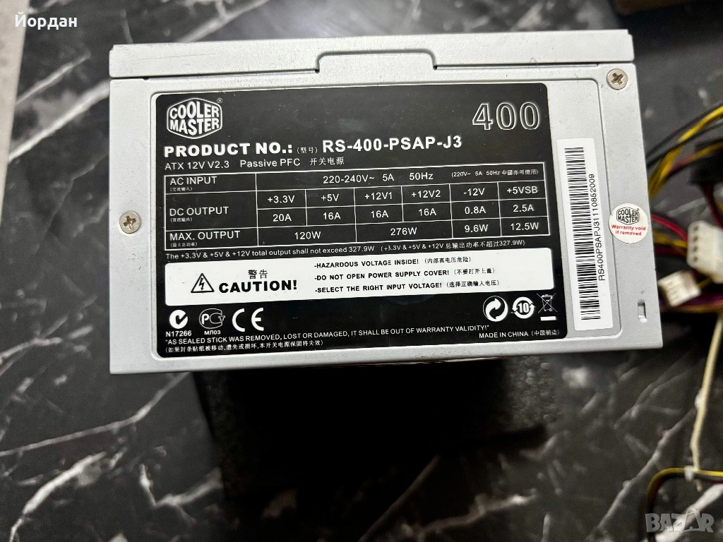Надеждно захранване Cooler Master 400W (RS-400-PSAP-J3) – Тествано и работещо → Обява 53436129