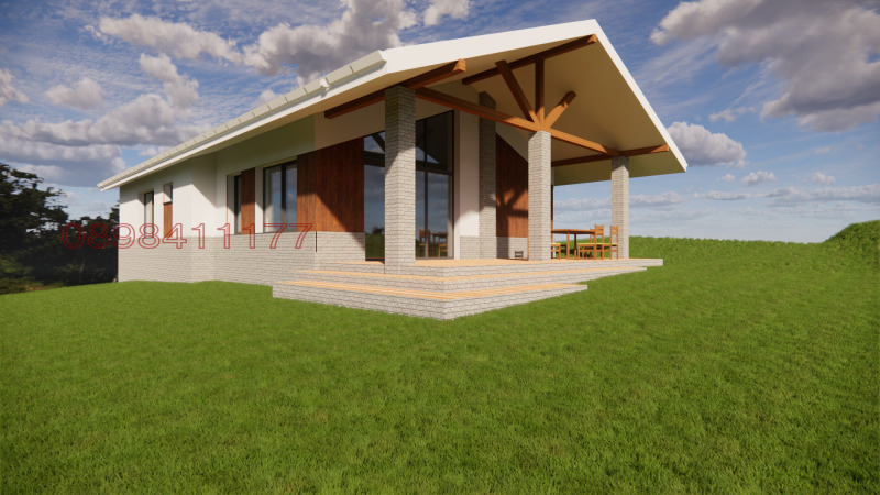 Предлагам на вашето внимание къща в с.Големо Бучино. Разрешение за строеж от 2025г. като строежът е започнат. Очаквано въвеждане в експлоатация - краят на 2026г. Сградата е масивна на един етаж със следното разпределение - хол с кухненска част, три спални, две бани с тоалетна , коридор, техническо помещение, веранда и тераса. Имотът е с минимална денивелация, като това е осигурено чрез изграждане на подпорни стени по контура на същия. В съседство има целогодишно обитеми сгради. Къщата се намира на 500м от центъра на селото по пътната мрежа (на 200м в права линия).