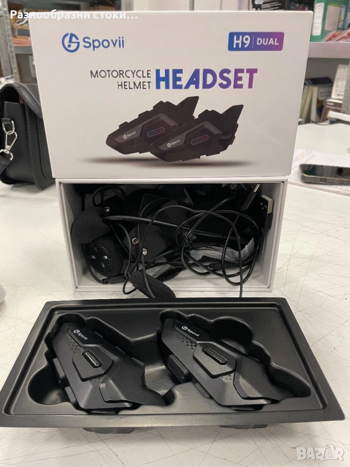 Комплект от 2 броя Bluetooth слушалки/интеркоми за мотоциклетни каски. Идеални за разговори между шофьор и пътник или между два мотора.