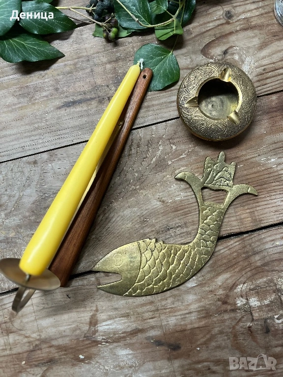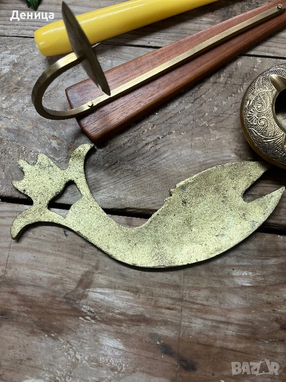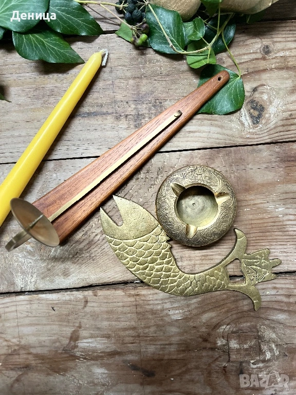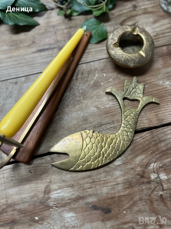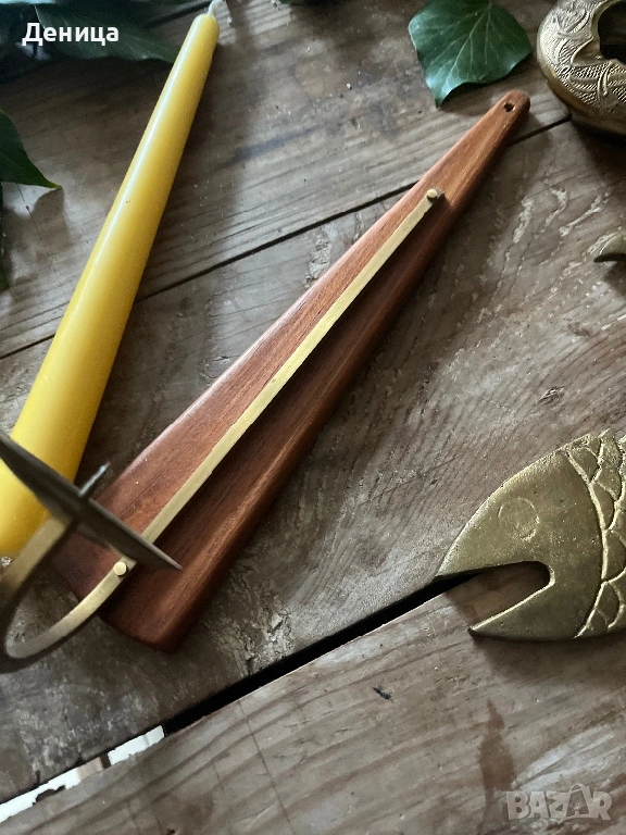 Свешник-28 см Дърво и месинг Цена-12 € Отварачка с форма на риба, която ми напомня на илюстрация от → Обява 53436443