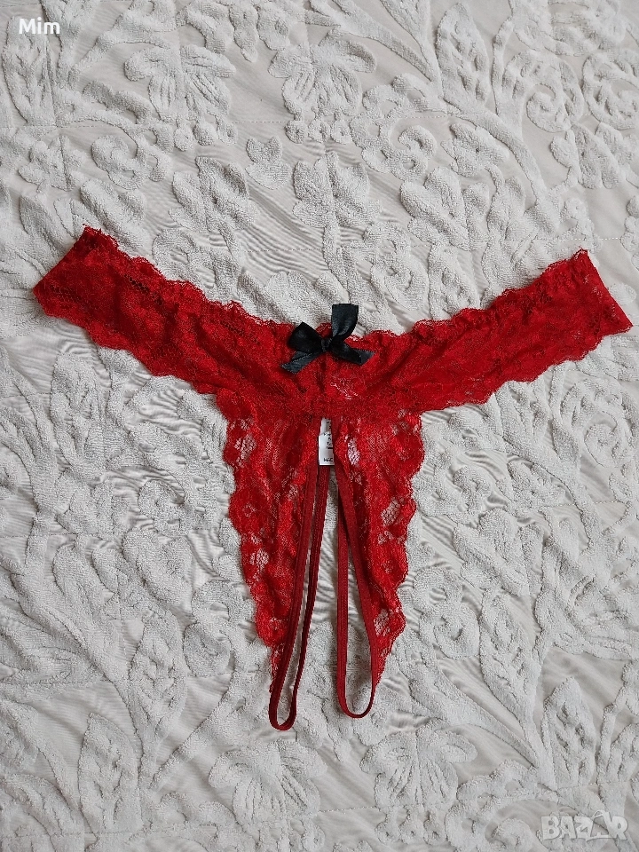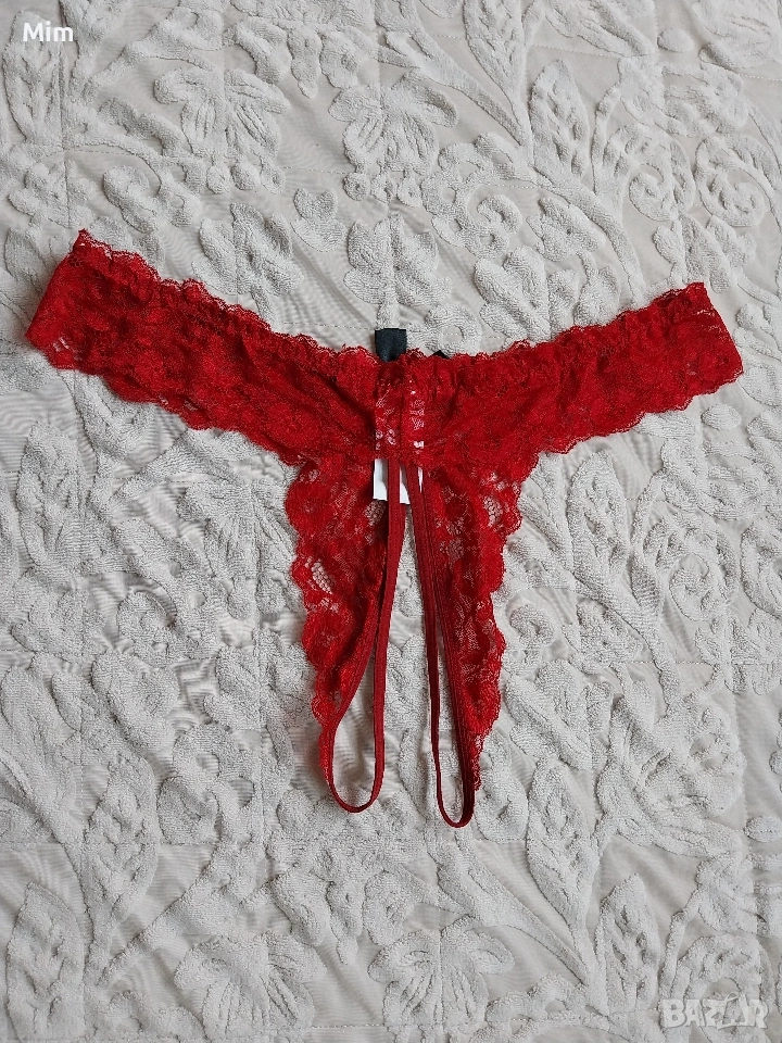 2XL Червена дантелена полупрашка с отворено дъно → Обява 53436528