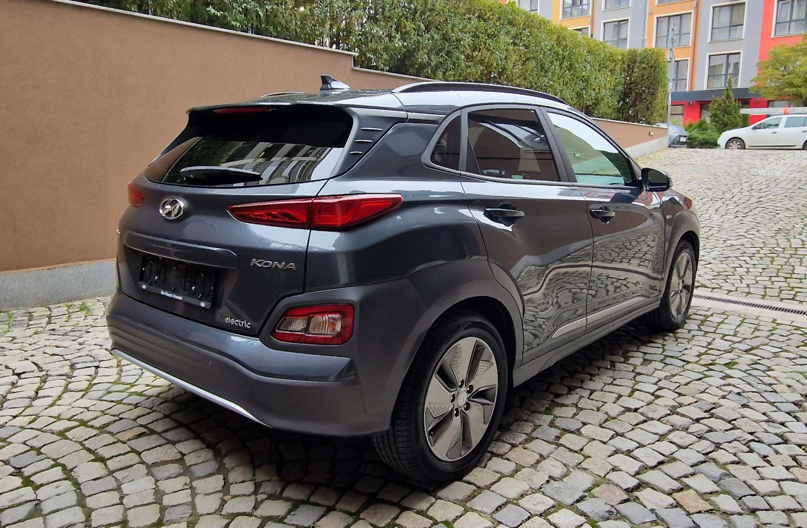 Germany Electric Cars Ви предлага Hyundai KONA Electric 8/2020. Blue Link. Най-високо ниво на оборудване PREMIUM. Гаранция на батерията 2029г. Сертификат за живота на батерията/state of health/ SOH100%. Oборудване: ШИБИДАХ Пакет помощ при шофиране: електрически външни огледала. сгъваема, система за подпомагане при шофиране: асистент за мъртва зона, помощ за паркиране отзад, Head-up дисплей, система за помощ при шофиране: помощ при паркиране отпред и отзад, система за подпомагане на шофирането: асистент за напречен трафик отзад (Cross Traffic) Навигационен пакет: навигационна система, 8 високоговорителя, субуфер, интерфейс за смартфон (Apple CarPlay & Android Auto), звукова система KRELL, цветен сензорен дисплей Пакет седалки: Отопление на предните и задните седалки тапицерия на седалките: кожа, комфортни седалки отпред, включително вентилация Система за подпомагане на шофирането: Функция за автономно аварийно спиране, включително предупреждение за челен сблъсък (FCA): Система за подпомагане на шофирането: Функция за автономно аварийно спиране, включително разпознаване на пешеходци (FCA-Ped. ), Система за подпомагане на шофирането: Функция за автономно аварийно спиране, включително разпознаване на велосипедисти (FCA-Cyc. ) Специално оборудване (MIC) Слюдена боя / боя с минерален ефект Стандартно оборудване Светлина в завой Страничната въздушна възглавница за пътника може да бъде изключена Странична въздушна възглавница за пътника Въздушна възглавница от страната на водача Алармена система Антиблокираща спирачна система (ABS) Тип задвижване: задвижване на предните колела Електрически външни огледала регулируеми и отопляеми, и двете Боядисани външни огледала СПИРАЧЕН АСИСТ Светлинен индикатор, интегриран във външното огледало Релси на покрива Автоматично включване на светлините/сензор за светлина Електрическо разпределение на спирачното усилие Електрически двигател 150 kW Електрон. Контрол на стабилността (ESC) със спирачен асистент Система за подпомагане на шофирането: Attention Assistant Система за подпомагане на шофирането: Асистент за потегляне по наклон Система за подпомагане на шофирането: Асистент за дълги светлини Система за подпомагане на шофирането: Система за сигурност с автоматично спешно повикване (ERA GLONASS / eCall) Система за подпомагане на шофирането: асистент за задръстване Система за подпомагане на шофирането: асистент за пътни знаци Система за подпомагане на шофирането: активен асистент за поддържане на лентата (LKAS, Lane Keep Assist System) Информационна система за водача (7, 0 инчов дисплей) Електрически задни стъкла Електрически стъкла отпред Bluetooth система за свободни ръце Предно стъкло с лентов филтър отгоре Топлоизолиращо предно стъкло Подкрепа за контракормилно управление (Управление на стабилността на превозното средство, VSM) Осветление на багажното/товарното пространство Покривало на багажното отделение / ролетна щора Система за круиз контрол (темпомат) с дистанционен контрол ACC Предна поставка за чаша Задни светлини LED Задно стъкло с възможност за отопление ISOFIX стойки за детски седалки Индукционна зарядна станция за смартфон Вътрешно огледало с автоматично затъмняване Климатроник Система за въздушни възглавници за главата Регулируеми задни облегалки за глава LM джанти Седалка с лумбална опора предна лява, електрическа. регулируема Волан (кожен) с мултифункц Подгряване на волана Волан с лостчет