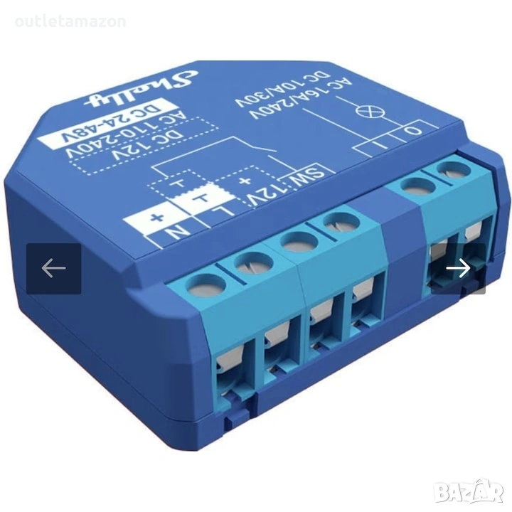 Смарт реле Shelly Plus 1, x1 канал 16A, Wi-fi и Bluetooth, сух контакт, съвместимо с: Amazon Alexa, Google Assistant и Home Assistant, свързаност без хъб