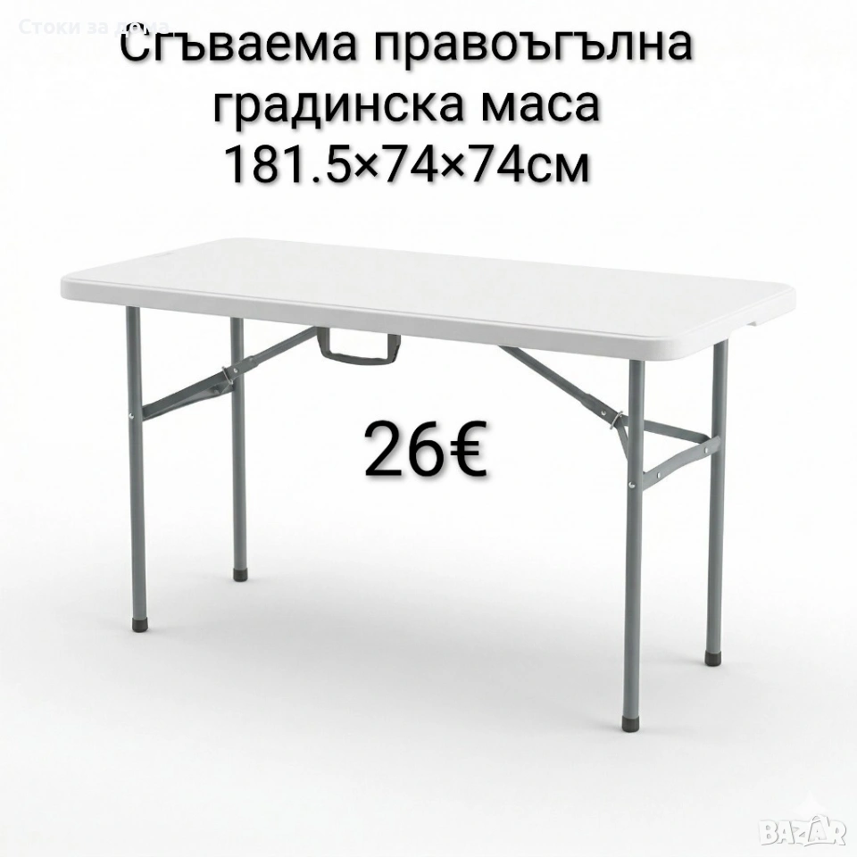 Сгъваема правоъгълна градинска маса, бяла - 181.5 × 74 × 74 см