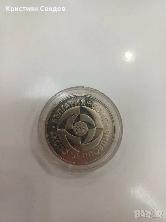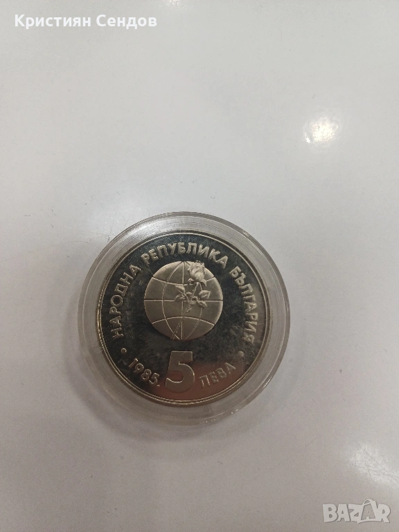 Продавам българска възпоменателна монета от 5 лева, емисия 1985 г., посветена на Международния панаир ЕКСПО Пловдив.