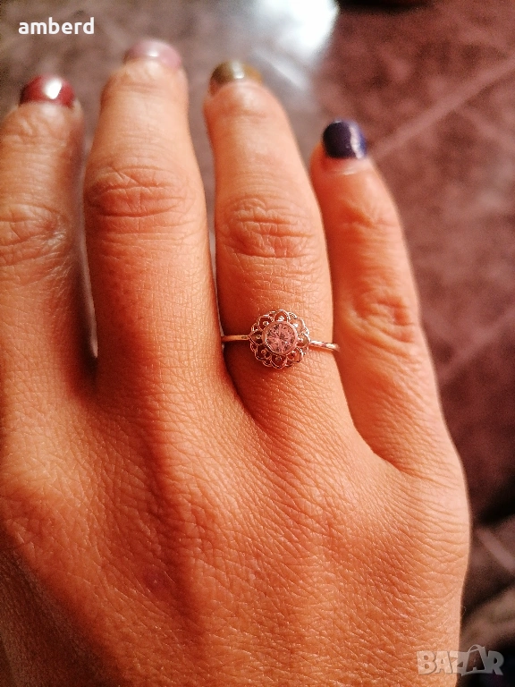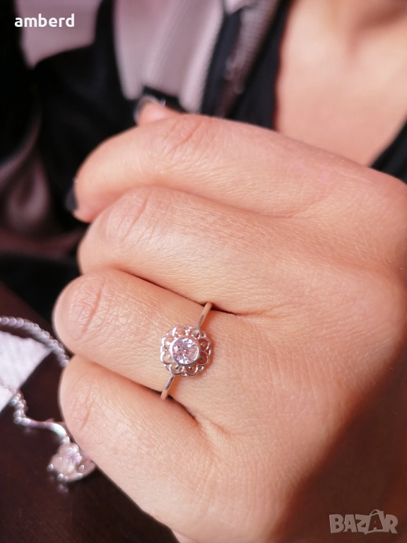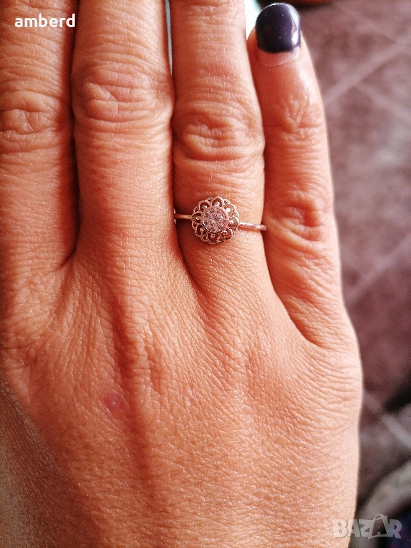 Изключително нежен пръстен, изработен от сребро проба 925. Вътрешен диаметър - 16.7мм.