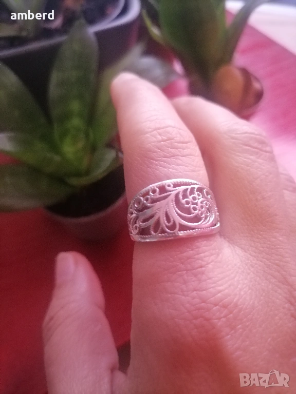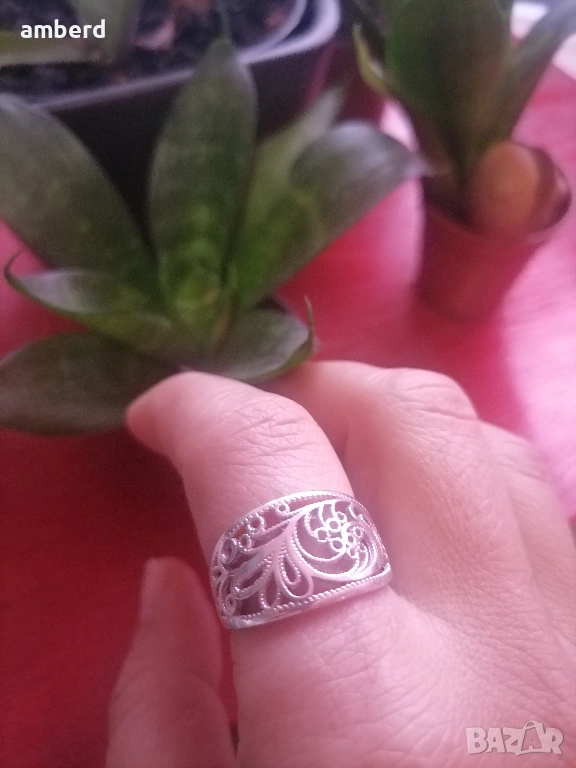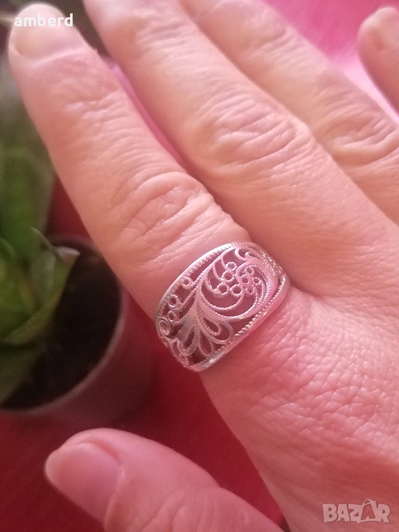Елегантен и стилен пръстен, изработен от сребро проба 925. Вътрешен диаметър 19 мм. Тегло - 4.00гр.