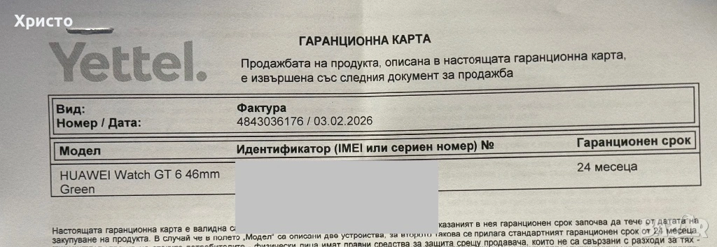 Чисто нов смарт часовник Huawei Watch GT 6. Устройството е неразпечатано, в оригинална кутия. Закупен на 30 Януари 2026 г. с 24 месеца гаранция. Часовникът не е активиран и не е използван. Отличен избор както за ежедневна употреба, така и за спорт – елегантен дизайн, AMOLED дисплей и дълъг живот на батерията. Продава се пълен комплект. Гарантиран нов продукт. Без бартери!!!