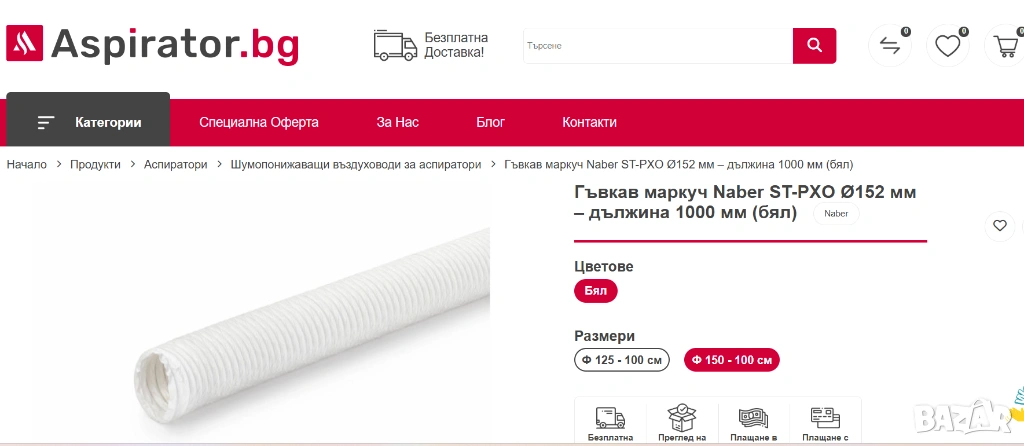 Продавам висококачествен гъвкав въздуховоден маркуч за намаляване на вибрации и по-тиха работа. Диаметърът Ø152 мм и дължината 1000 мм го правят отлично решение за абсорбатори и кухненска вентилация, особено при монтаж в конструктивно предизвикателни зони. Няколко налични бройки.