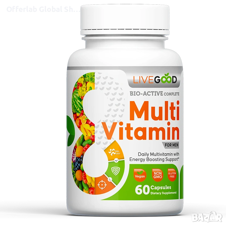 Bio-Active Full Multivitamin за мъже на LiveGood запълва празнините, които диетата ви пропуска. Опакован с 24 основни витамини и минерали, той повишава имунитета, поддържа здравето на сърцето, укрепва костите, изостря зрението, намалява стреса и насърчава здравословното стареене-на цена, която можете да си позволите.