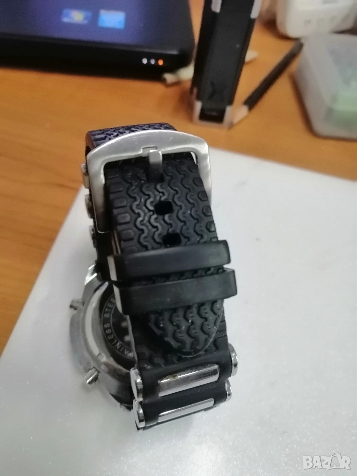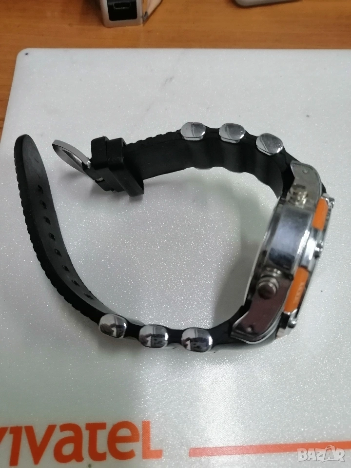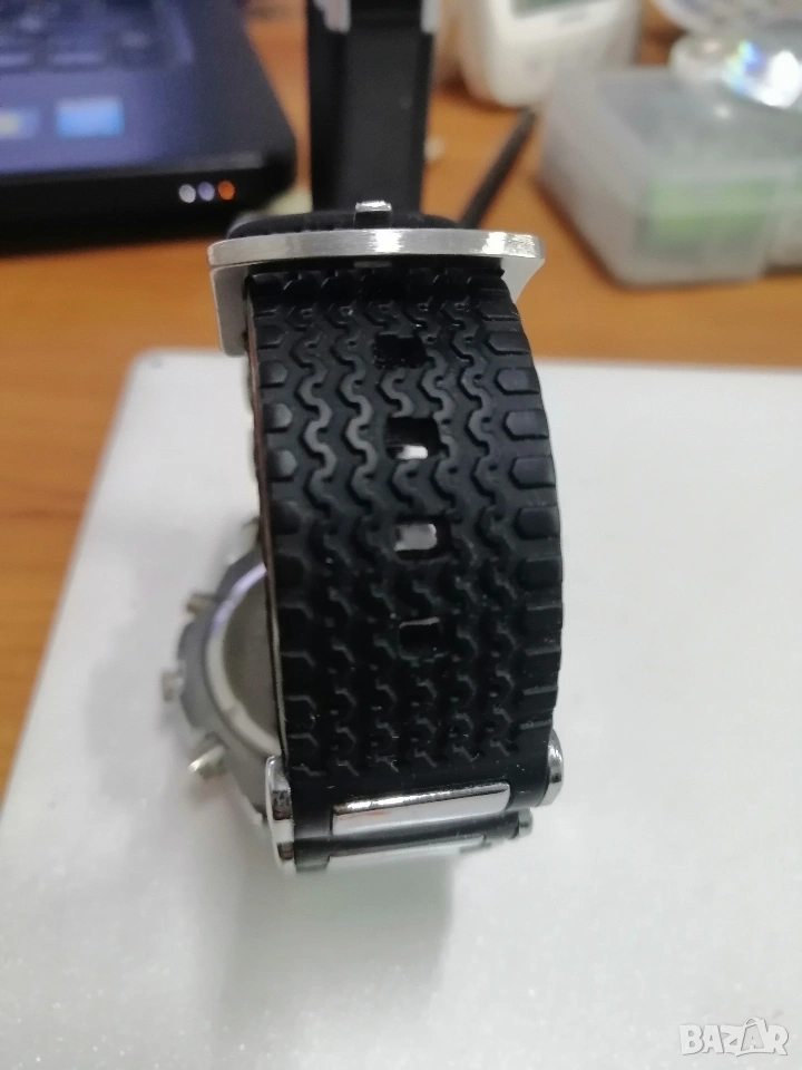 - Дисплей показва час, дата, ден от седмицата + 4 функционални бутона за управление и коронка