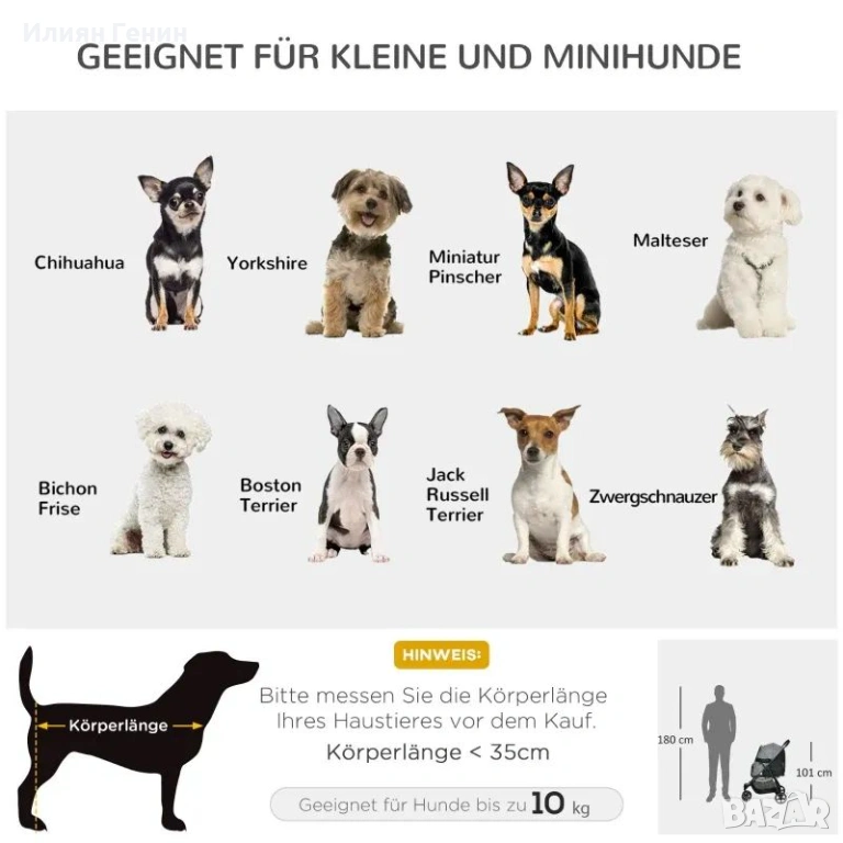 ✔ Подходящ за малки и много малки кучета до 10 кг и максимална дължина на тялото 35 см