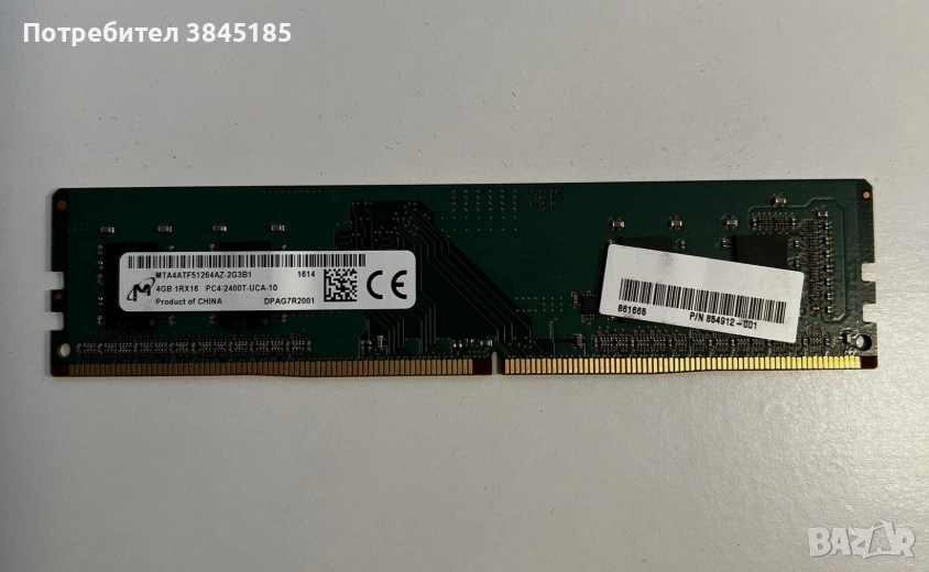 Рам памет за PC - Micron 4GB PC4-2400 DDR4 288-Pin Desktop Dimm MTA4ATF51264AZ-2G3B1 - перфектна