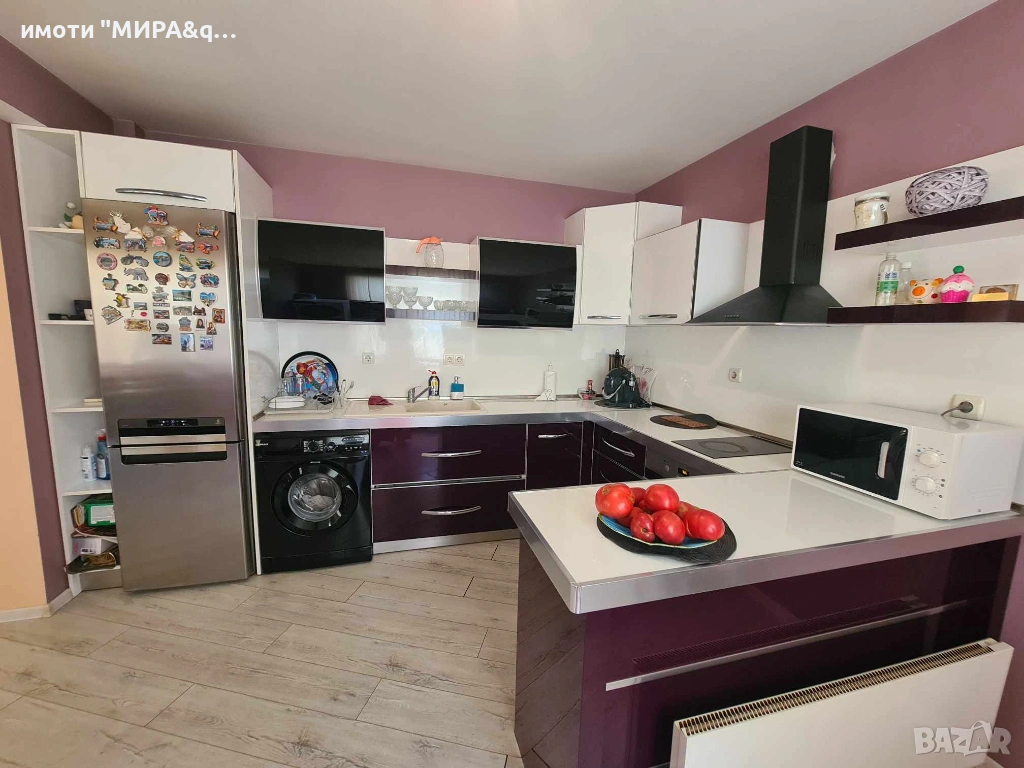 стъклокерамичен плот, абсорбер, хладилник и пералня. Отоплението е решено с