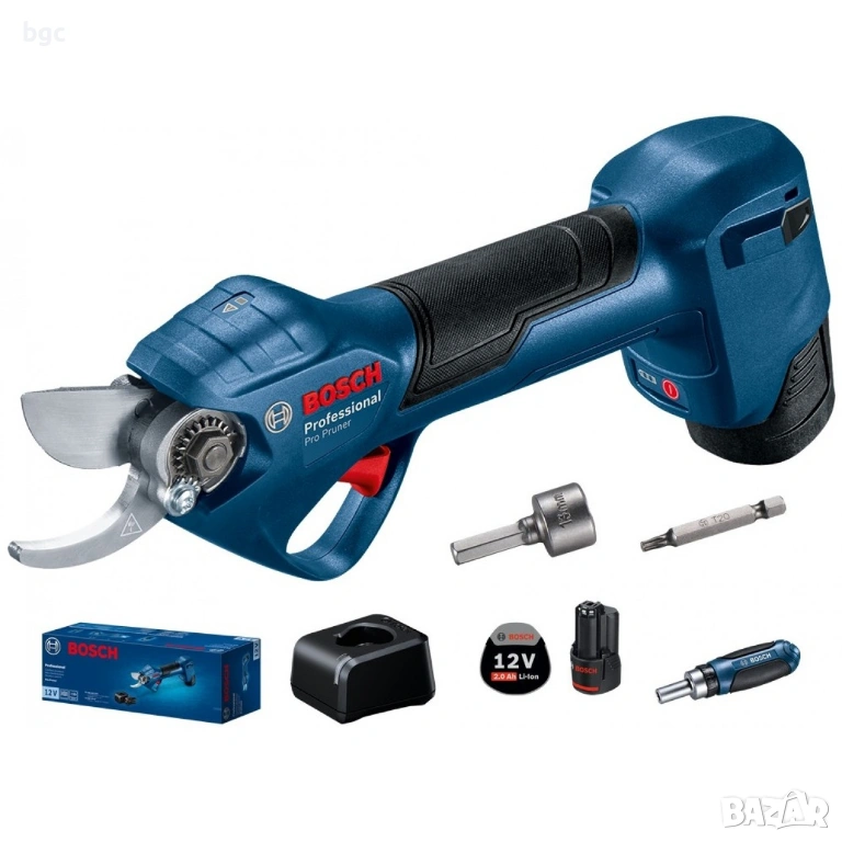 - BOSCH Pro Pruner е професионална акумулаторна лозарска ножица, която е оборудвана с ножове от неръждаема стомана.