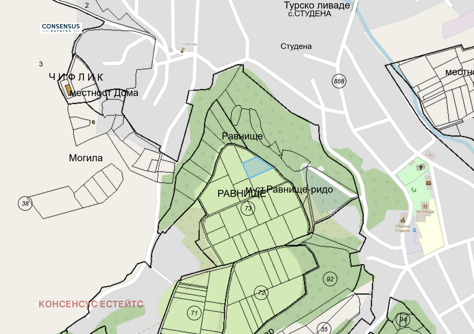 Парцелът се намира в село Студена, в края на улица 'Георги Димитров' до махала Чифлик. Местоположението е в близост до вилна зона, което осигурява едновременно тишина и удобен достъп.