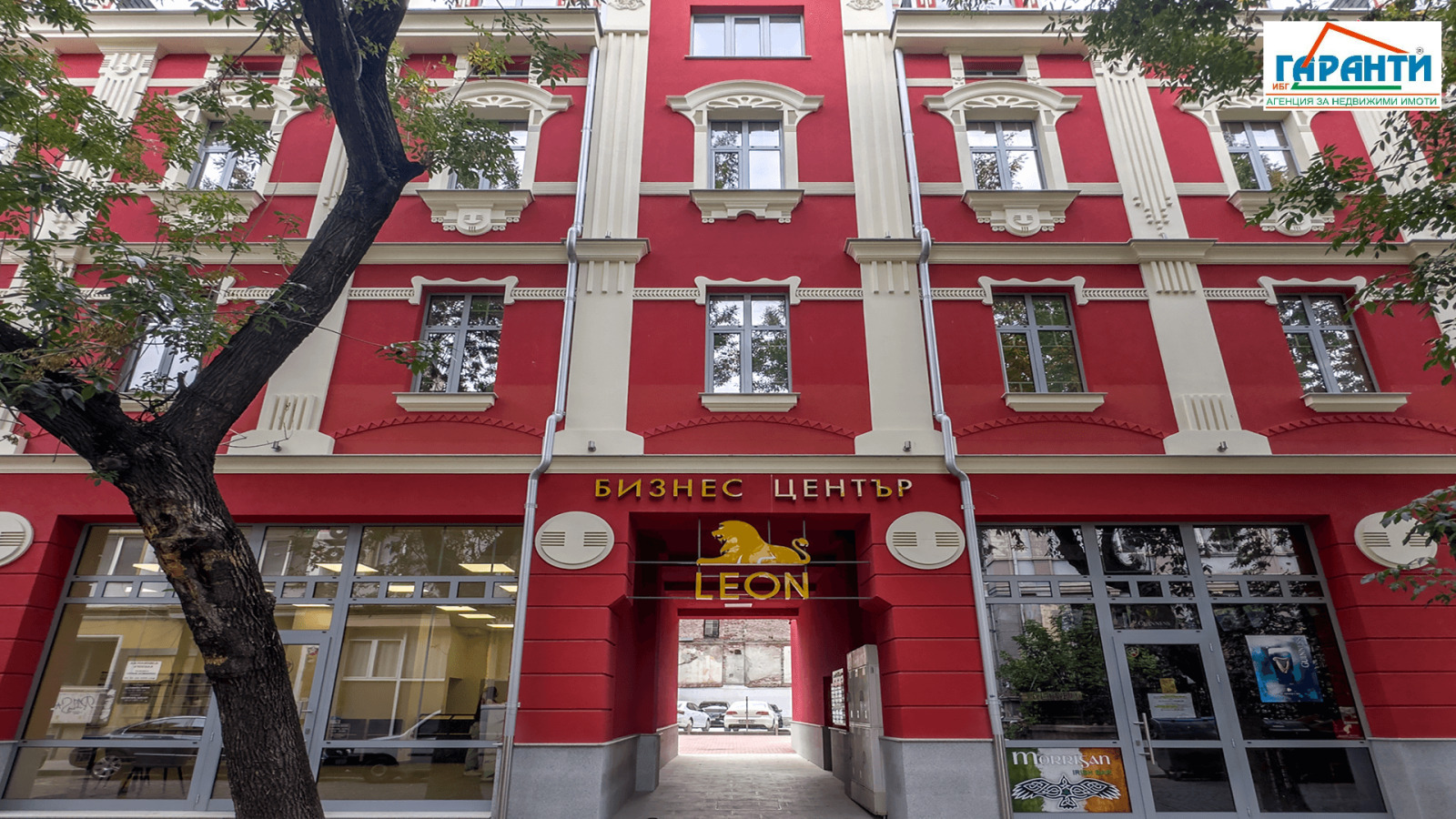 Агенция Гаранти отдава под наем офис -86 кв.м. в НОВИЯ БИЗНЕС ЦЕНТЪР LEON, разположен в сърцето на град Пловдив. Сградата е паметник на културата. Извършена е пълна реконструкция и модернизация, които са изцяло съобразени със специалните изискванията за този вид сгради, в т. ч. е запазена аристократичната фасада с корнизи и орнаменти. Сградата разполага с централна климатизация с VRV система от най-висок клас.
